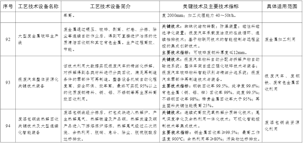 獲悉,12月14日,工業(yè)和信息化部 國(guó)家發(fā)展和改革委員會(huì) 科學(xué)技術(shù)部 生態(tài)環(huán)境部發(fā)布《國(guó)家工業(yè)資源綜合利用先進(jìn)適用工藝技術(shù)設(shè)備目錄(2021年版)》。共包括94項(xiàng),涉及工業(yè)固廢處理、再生資源回收等。詳情如下: