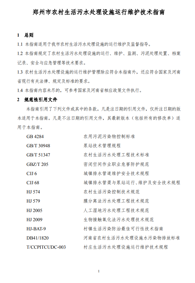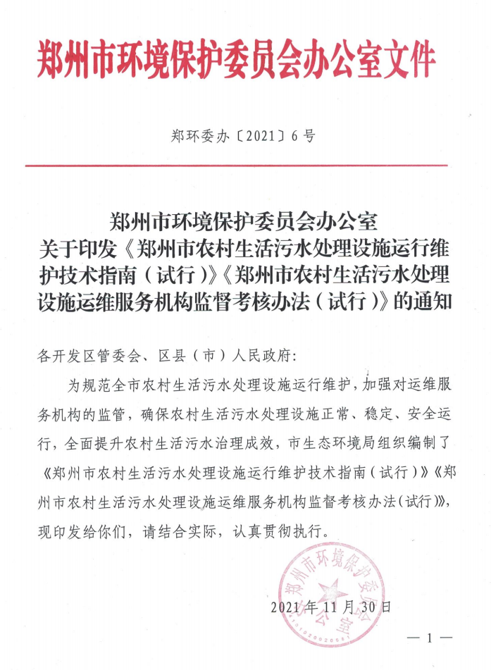 《鄭州市農(nóng)村污水處理設(shè)施運行維護技術(shù)指南(試行)》(鄭環(huán)委辦【2021】6號)