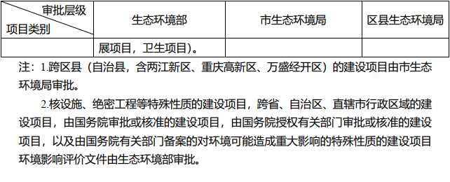 建設(shè)單位應(yīng)按《重慶市建設(shè)項目環(huán)境影響評價文件分級審批目錄(2021年修訂)》(見附表,以下簡稱《目錄》)規(guī)定,將建設(shè)項目環(huán)評文件報有審批權(quán)的生態(tài)環(huán)境行政主管部門審批。