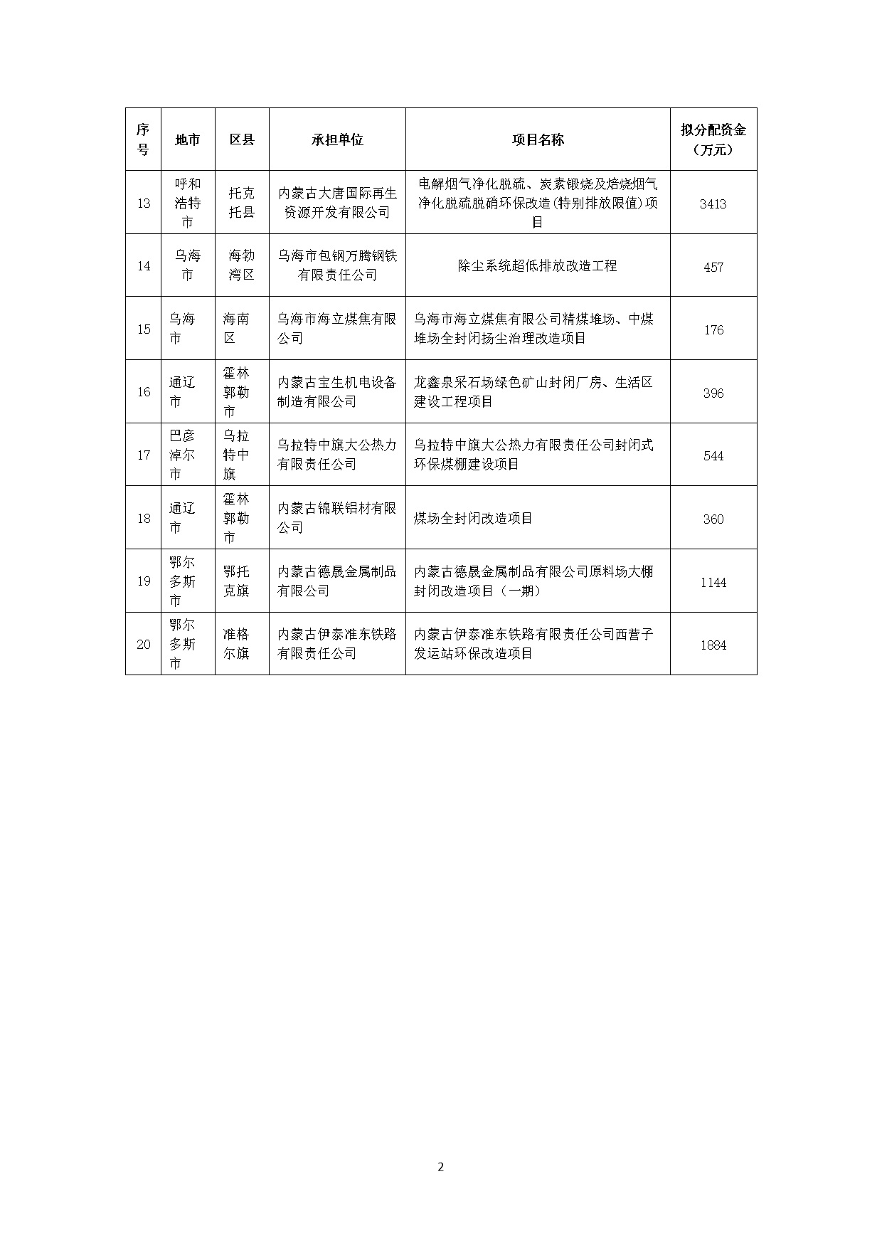 2021年12月3日《內(nèi)蒙古自治區(qū)2022年提前批中央大氣污染防治資金擬支持項目清單》