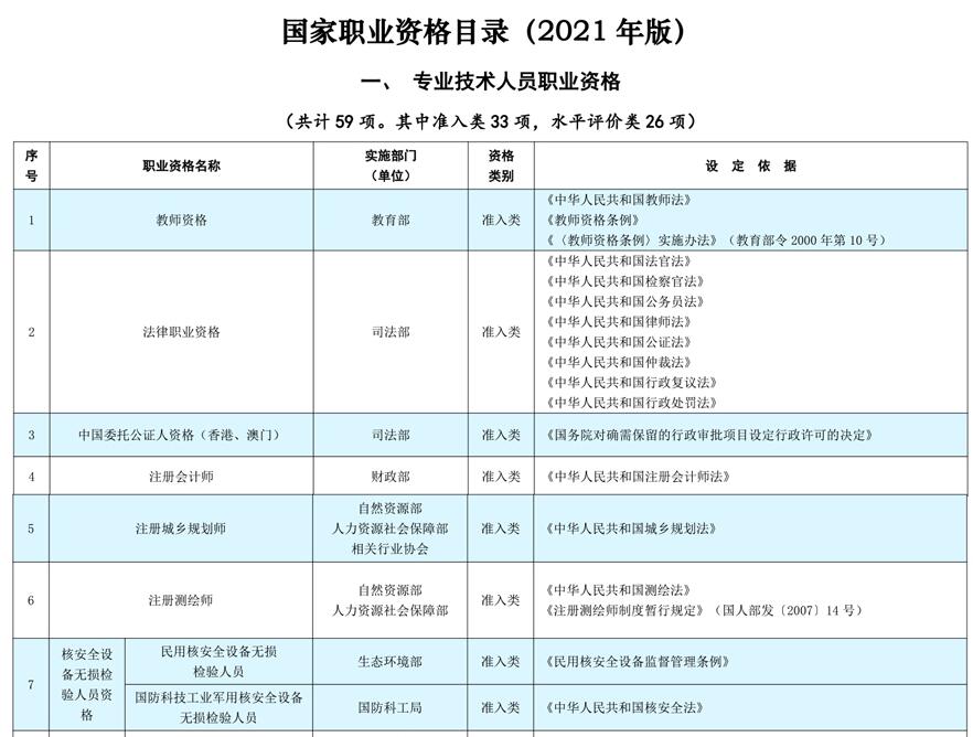 《國(guó)家職業(yè)資格目錄(2021年版)》