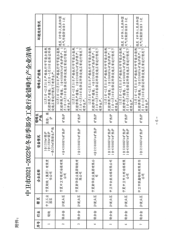 《寧夏中衛(wèi)市關(guān)于2021-2022年冬春季部分工業(yè)行業(yè)開展錯峰生產(chǎn)的通知》(衛(wèi)工信發(fā)【2021】78號)