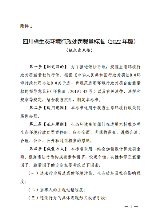 《四川省生態(tài)環(huán)境行政處罰裁量標(biāo)準(zhǔn)(2022年版)(征求意見稿)》