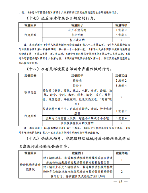 四川省生態(tài)環(huán)境廳《四川省生態(tài)環(huán)境行政處罰裁量標(biāo)準(zhǔn)(2022年版)(征求意見稿)》