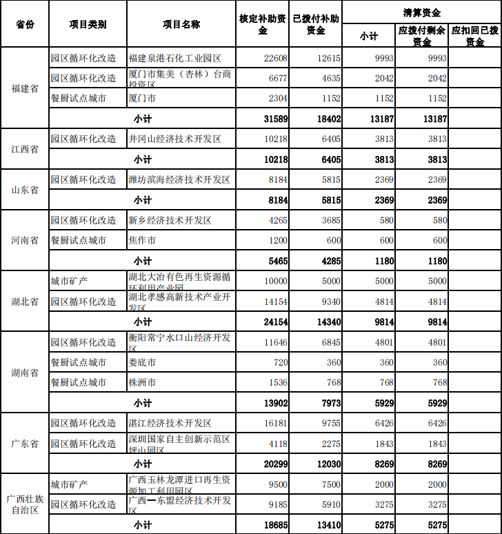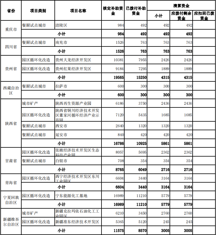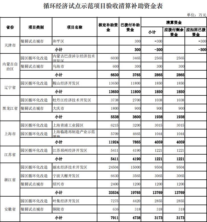 附件:循環(huán)經(jīng)濟(jì)試點示范項目驗收清算補(bǔ)助資金表《財政部提前下達(dá)2022年節(jié)能減排(循環(huán)經(jīng)濟(jì)試點示范項目)補(bǔ)助資金預(yù)算》(財建〔2021〕337號)