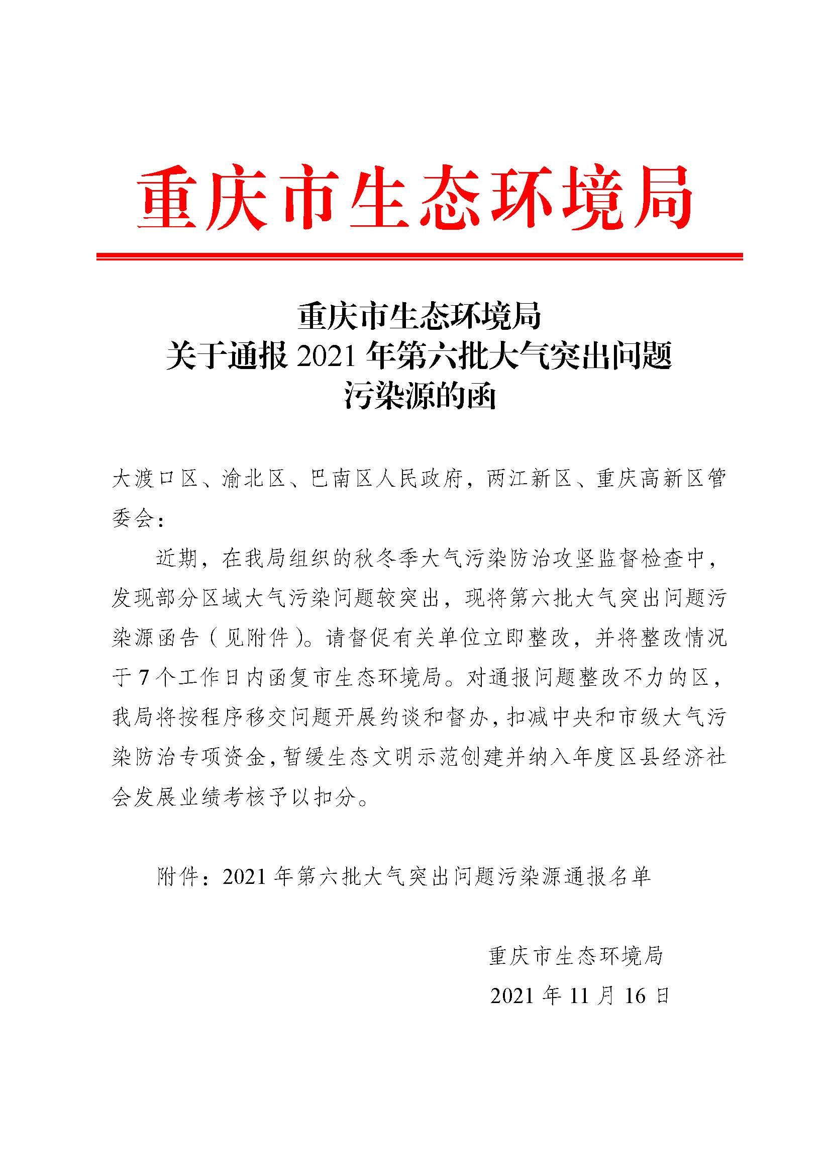 獲悉,11月16日,重慶市生態(tài)環(huán)境局通報(bào)2021年第六批大氣突出問題污染源。