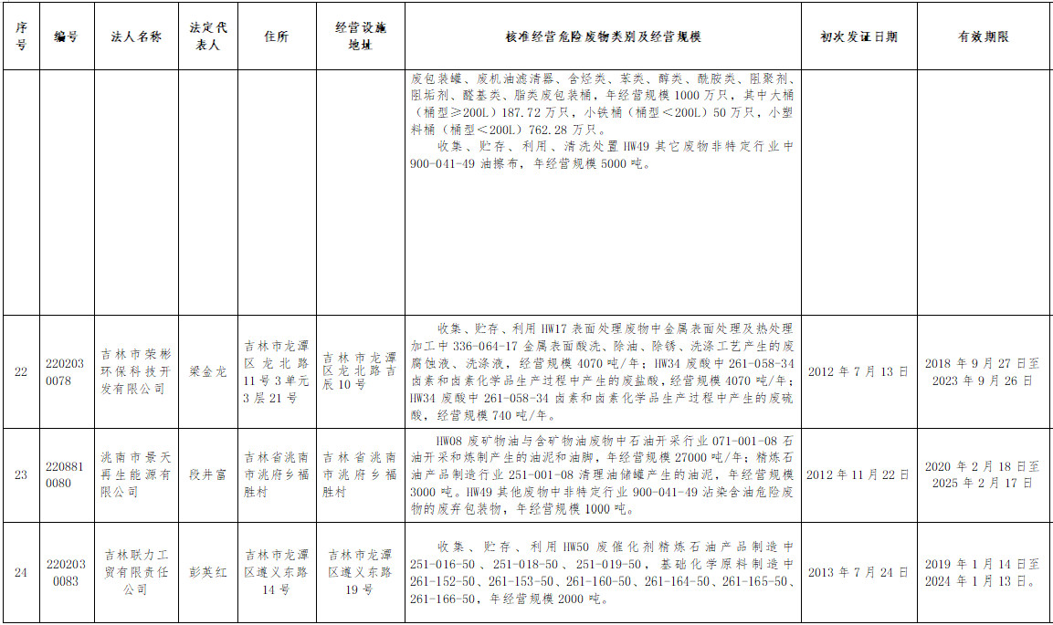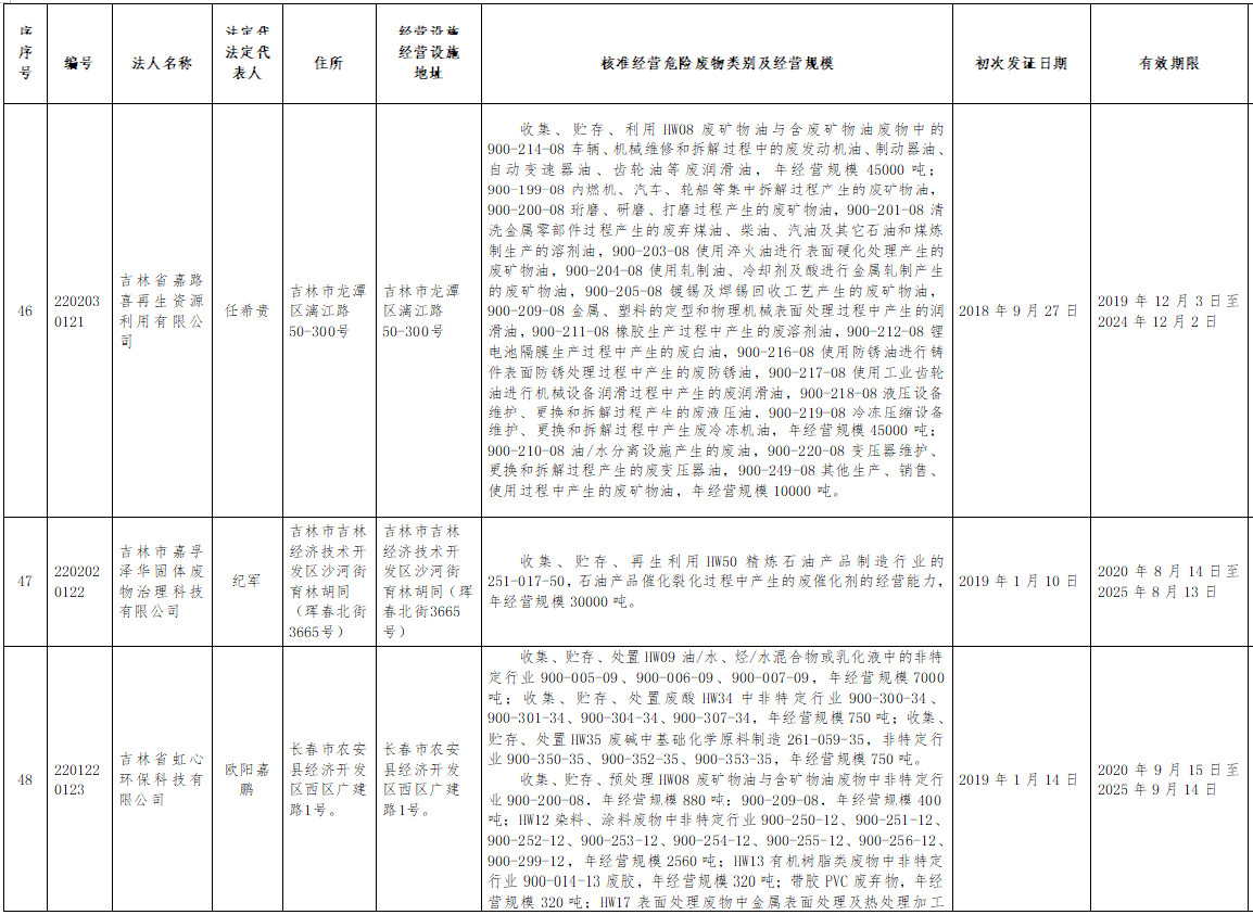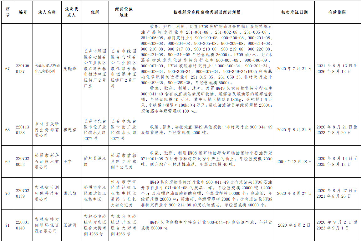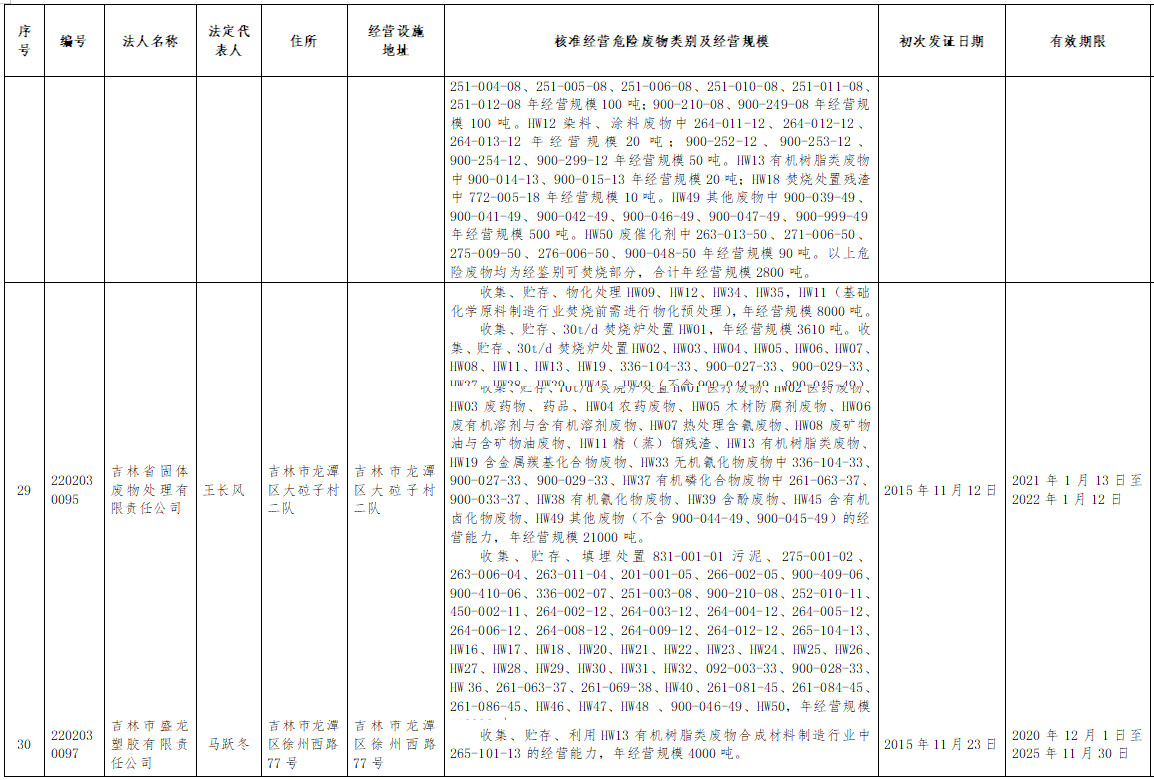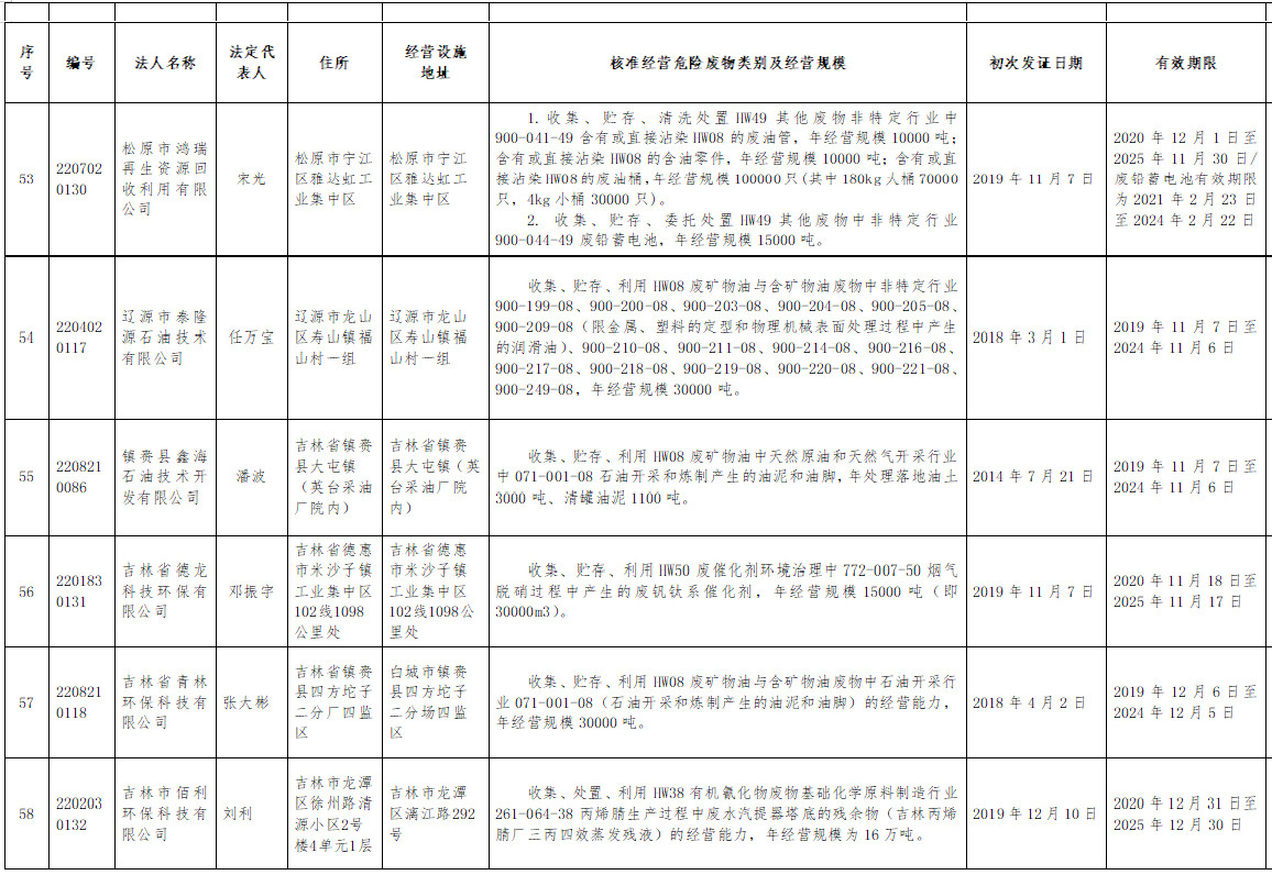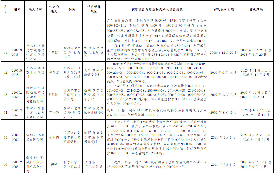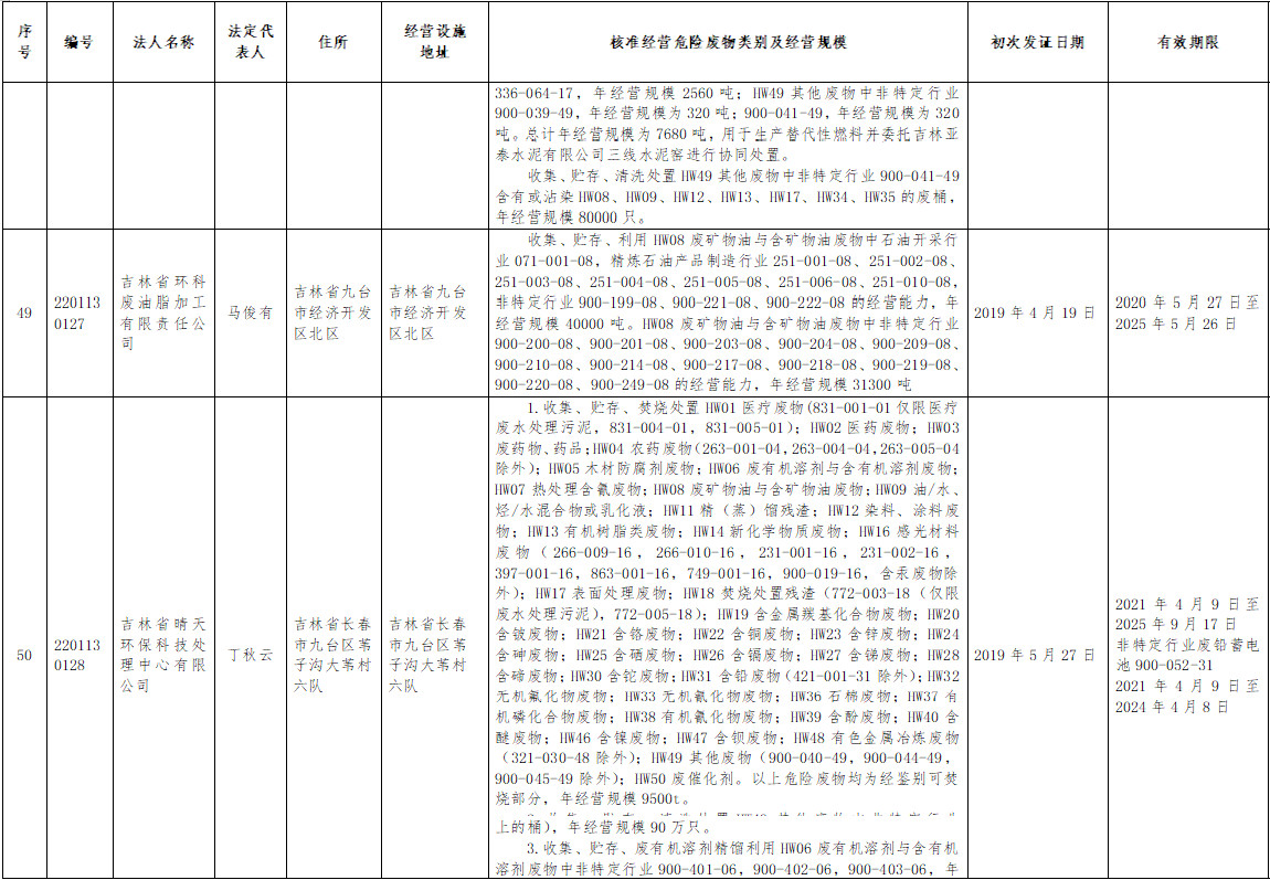吉林省危險廢物經(jīng)營許可證持證企業(yè)名單(2021年10月更新)資料下載_報告模板_模版下載