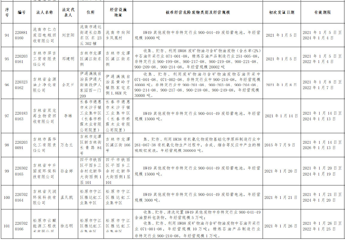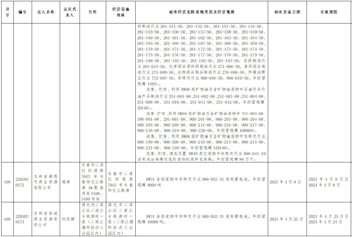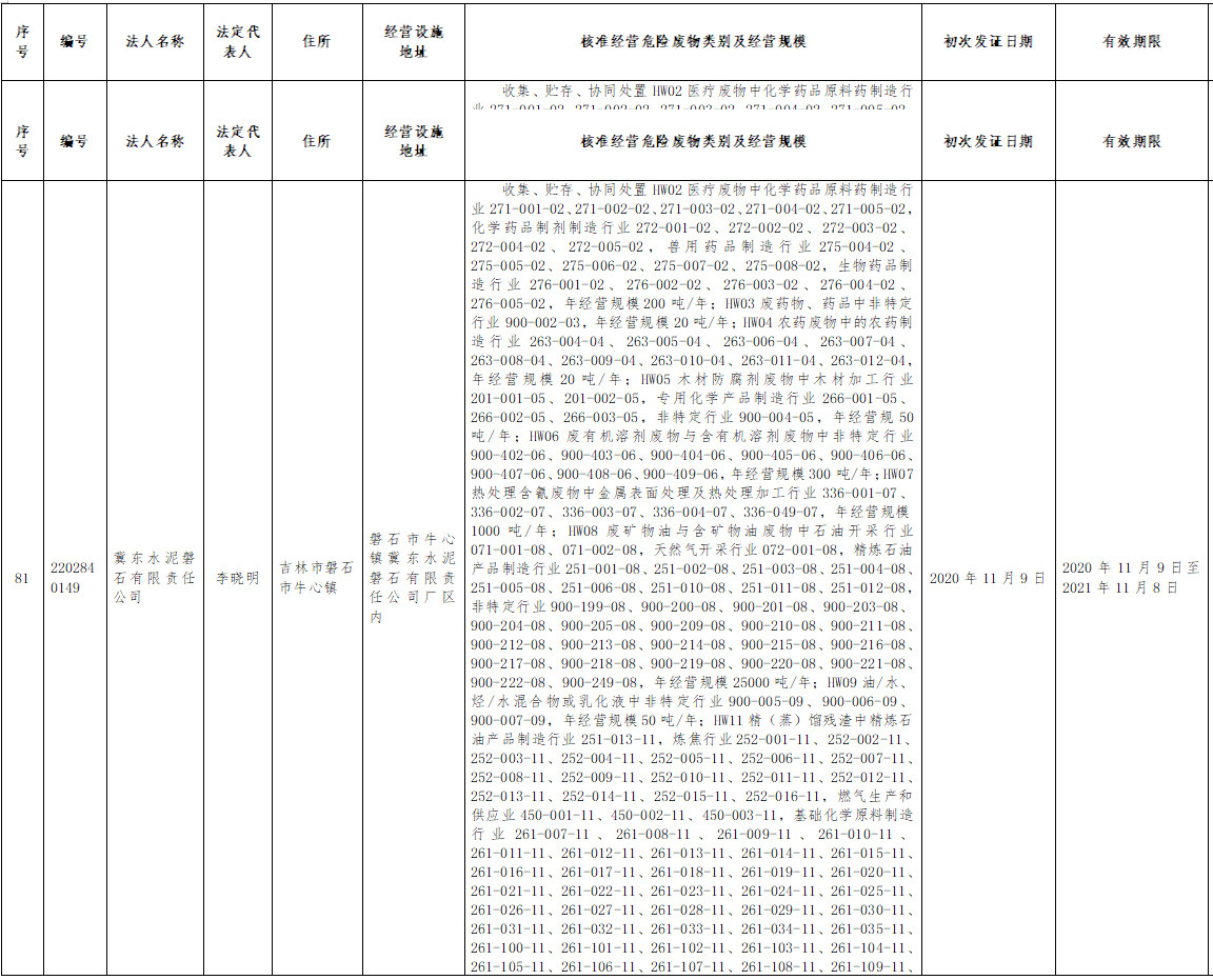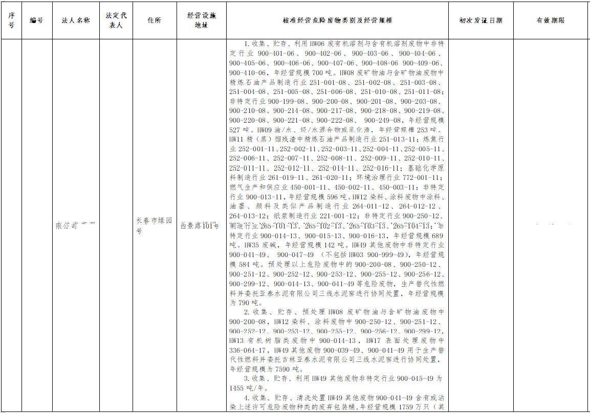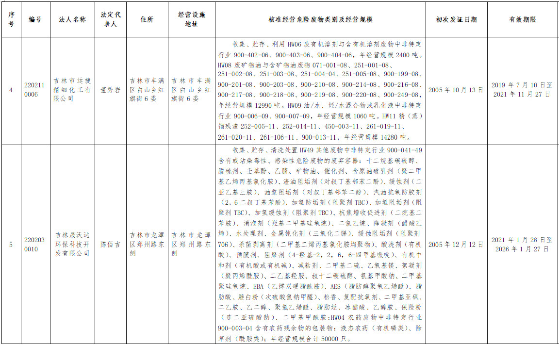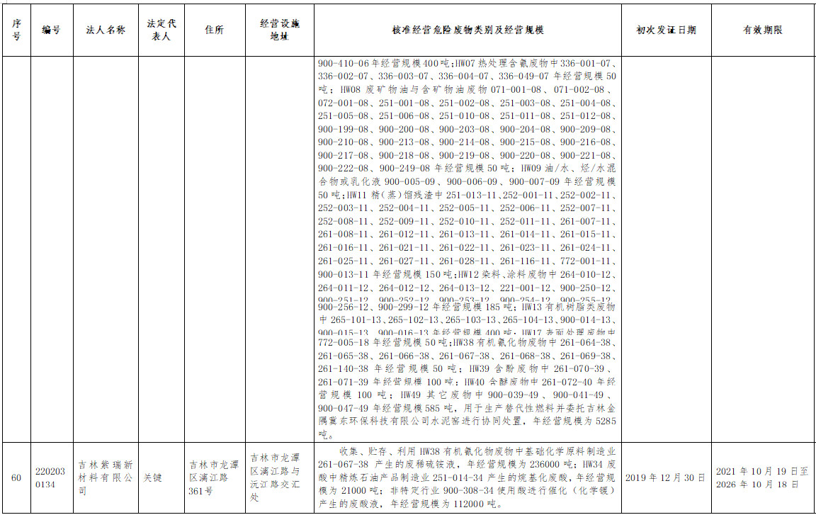 吉林省危險廢物經(jīng)營許可證持證企業(yè)名單(2021年10月更新)資料下載_報告模板_模版下載