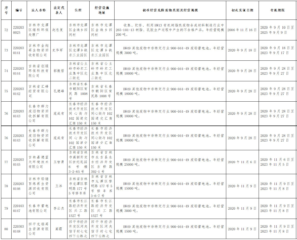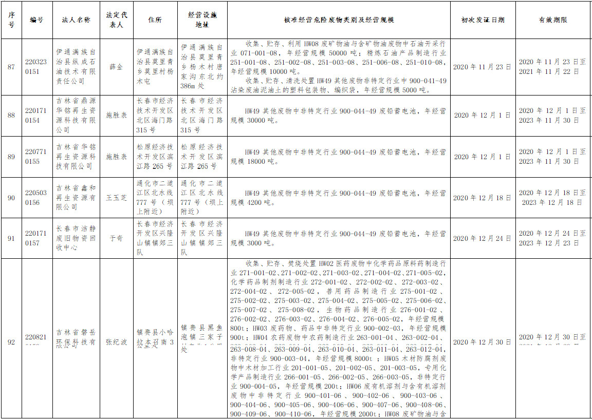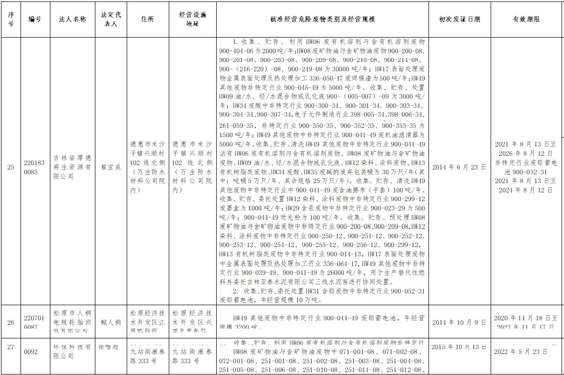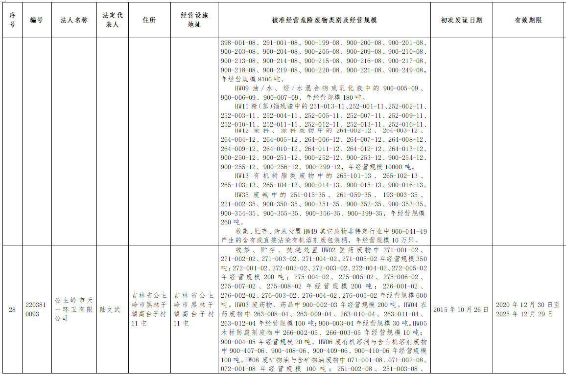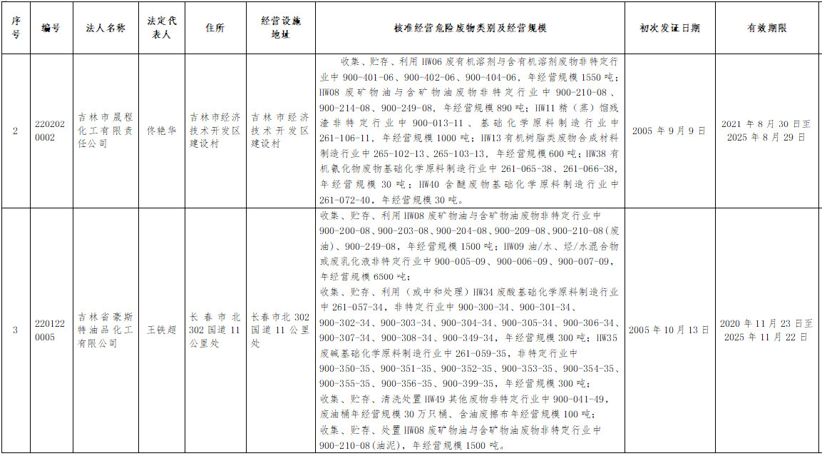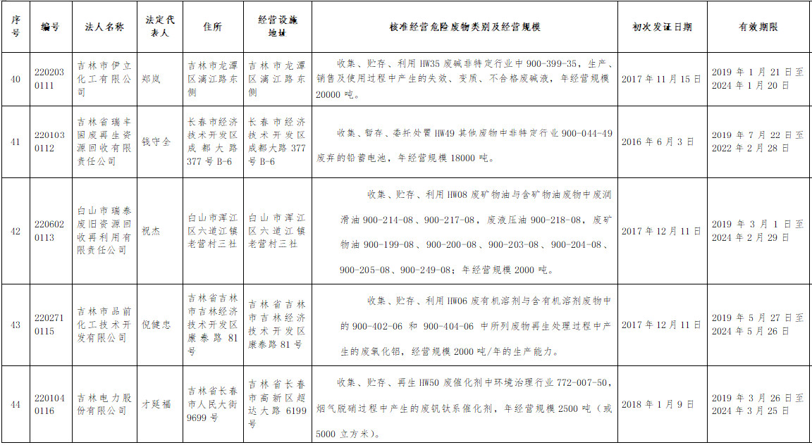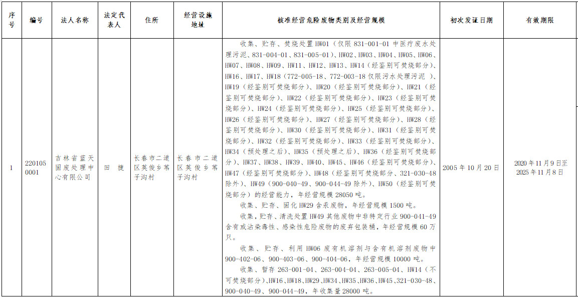 吉林省危險廢物經(jīng)營許可證持證企業(yè)名單(2021年10月更新)資料下載_報告模板_模版下載