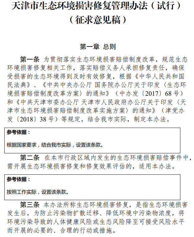 《天津市生態(tài)環(huán)境損害修復(fù)管理辦法 (試行)》(征求意見稿)