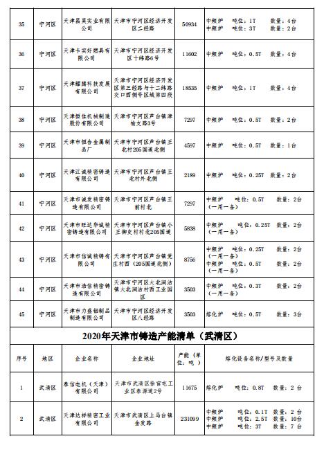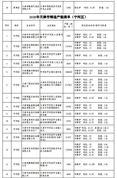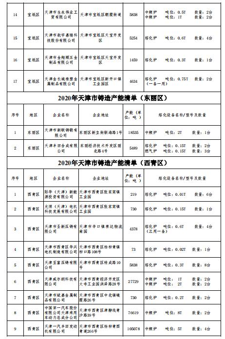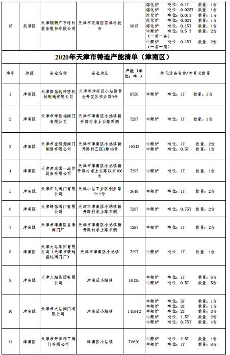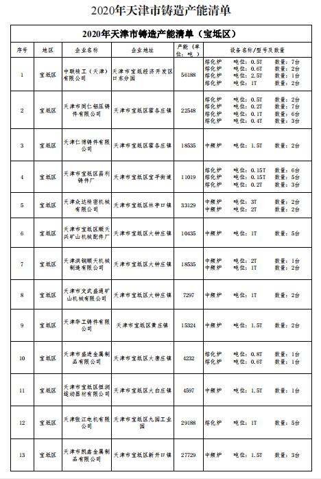 日前,天津公布2020年天津市鑄造產(chǎn)能清單。清單共涉及鑄造企業(yè)229家。詳情如下: