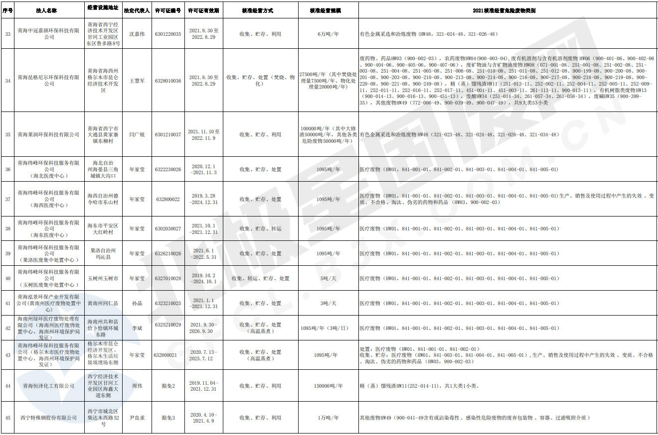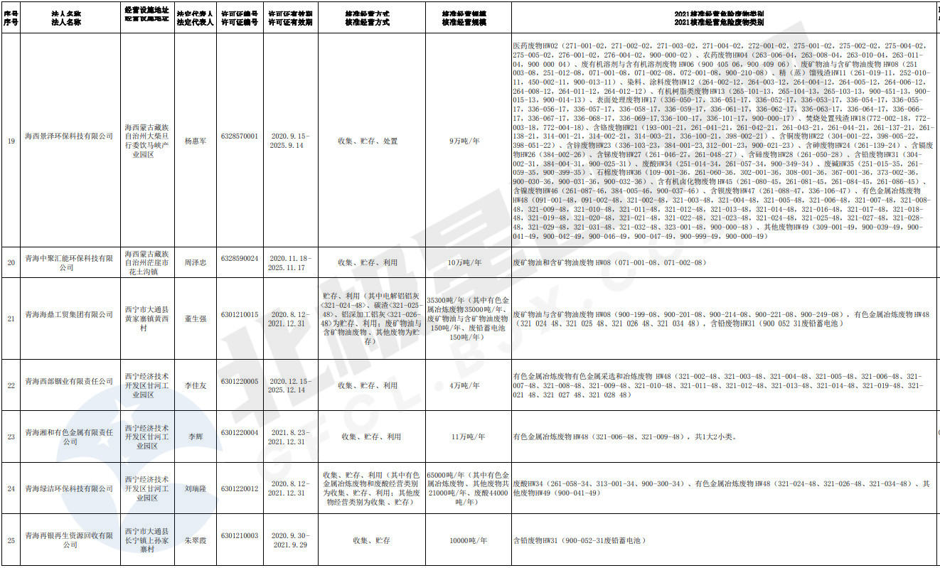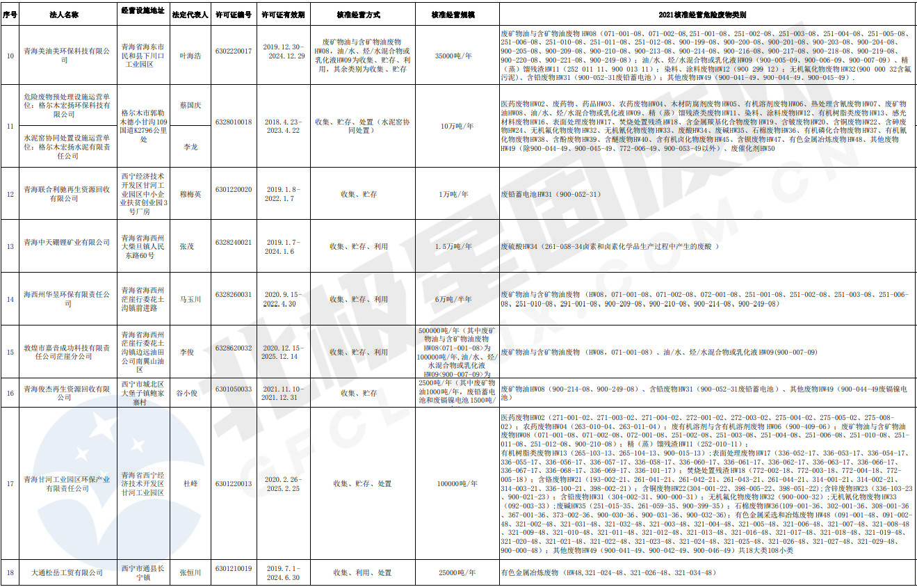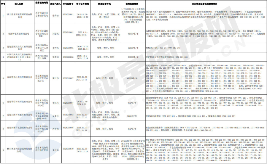青海省危險(xiǎn)廢物經(jīng)營(yíng)單位清單 (包括豁免經(jīng)營(yíng)許可證的危險(xiǎn)廢物經(jīng)營(yíng)單位 )(2021年11月10日更新)