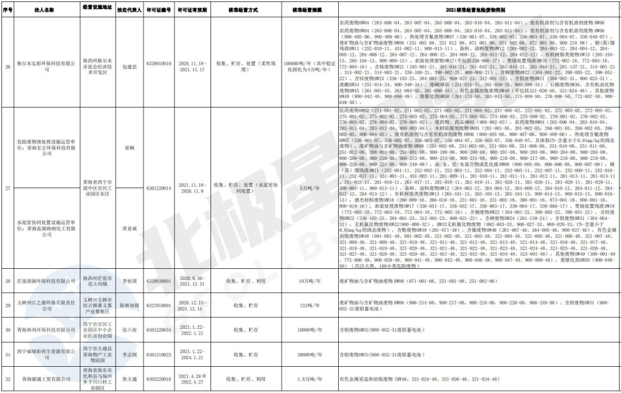 《青海省危險(xiǎn)廢物經(jīng)營(yíng)單位清單 》(包括豁免經(jīng)營(yíng)許可證的危險(xiǎn)廢物經(jīng)營(yíng)單位 )