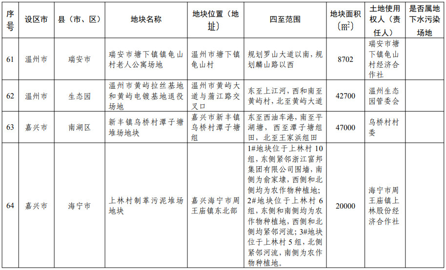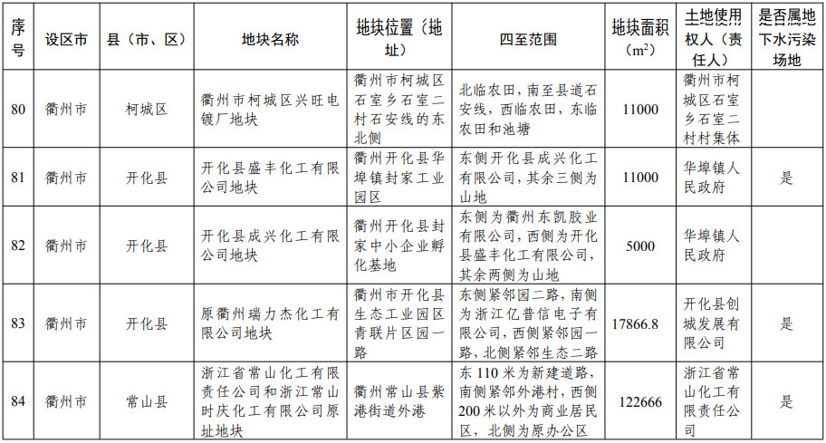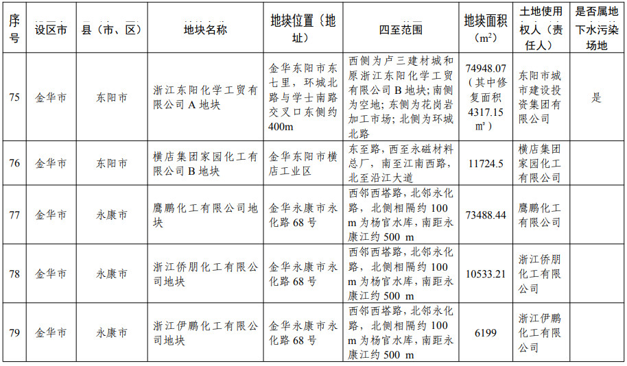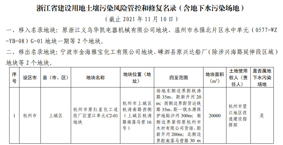 《浙江省建設(shè)用地土壤污染風險管控和修復名錄(含地下水污染場地)》(2021年11月10日更新)