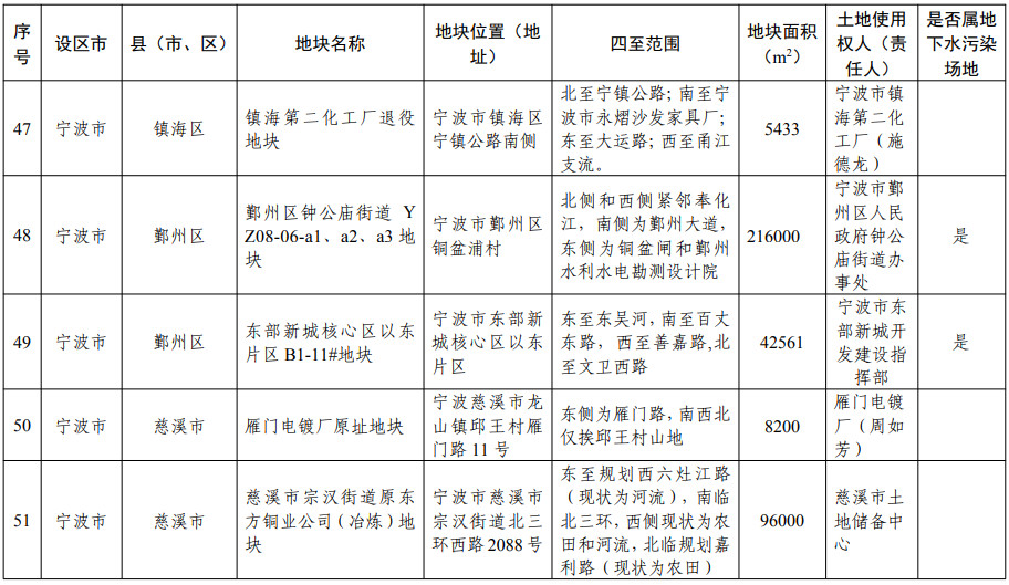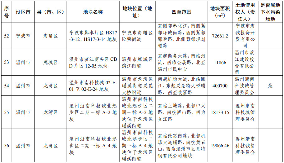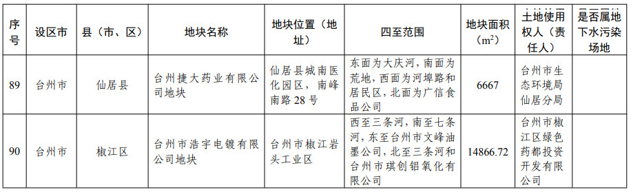 獲悉,11日,浙江省生態(tài)環(huán)境廳發(fā)布了浙江省建設(shè)用地土壤污染風險管控和修復名錄(含地下水污染場地),共90地塊,詳情如下: