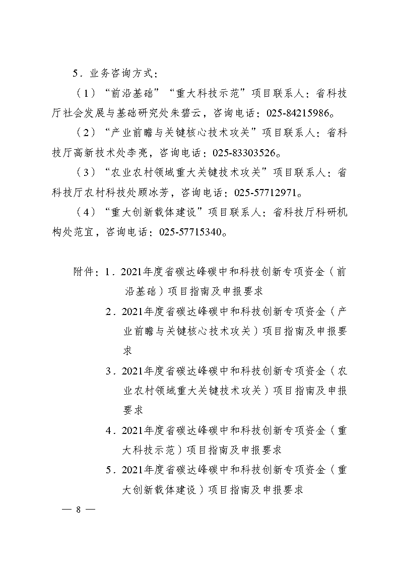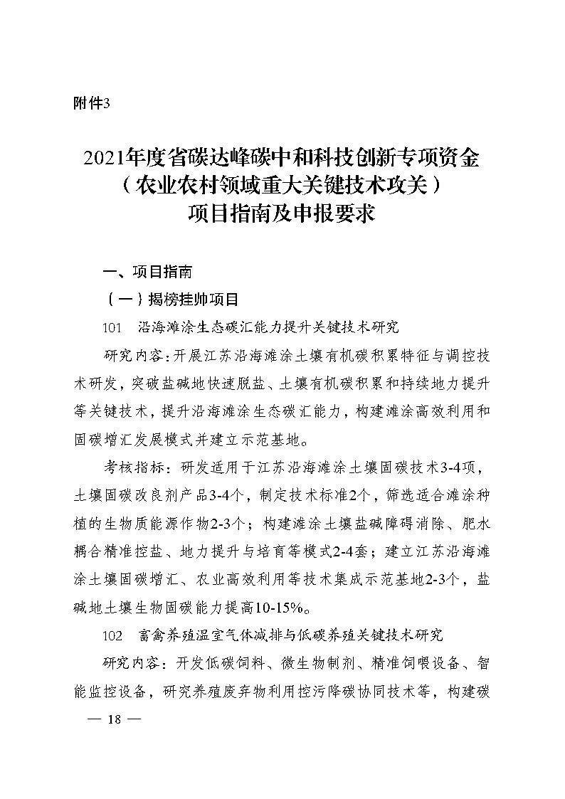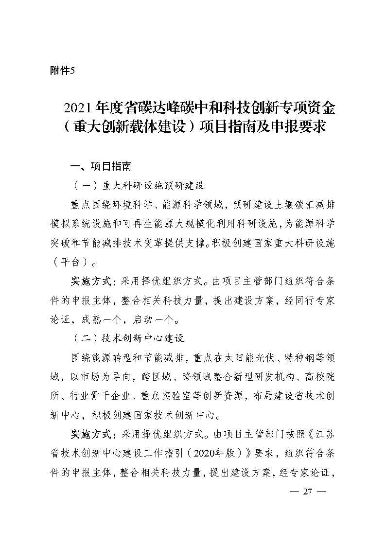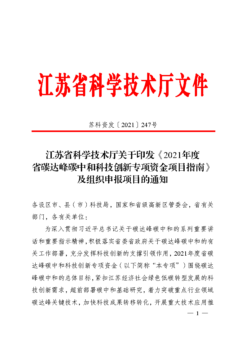 江蘇《2021年度省碳達(dá)峰碳中和科技創(chuàng)新專項(xiàng)資金項(xiàng)目指南》(蘇科資發(fā)【2021】247號(hào))