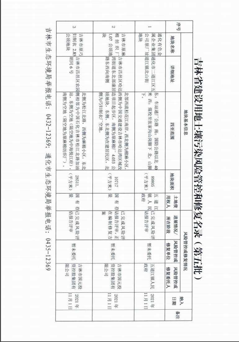 《吉林省建設(shè)用地土壤污染風(fēng)險管控和修復(fù)名錄》(第五批)(吉環(huán)廳【2021】3號)