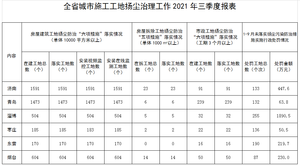 《山東省關于2021年三季度全省城市建設揚塵治理工作情況的通報》