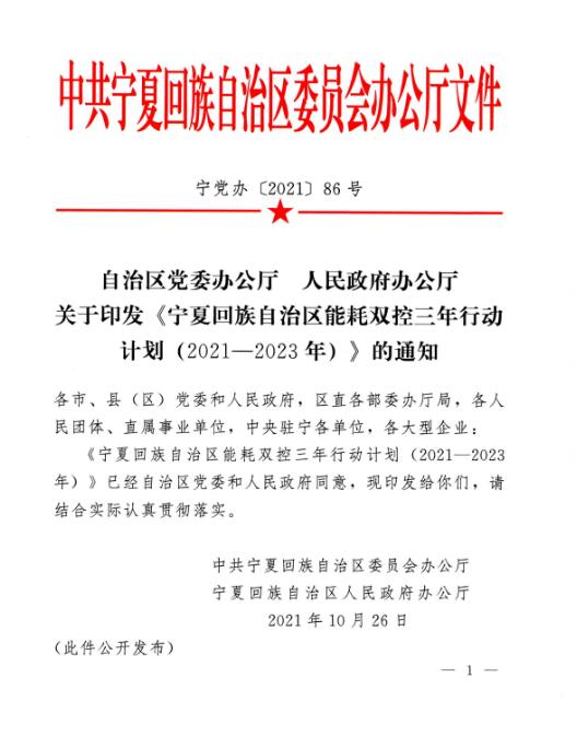 《寧夏回族自治區(qū)能耗雙控三年行動計劃(2021——2023年)》(寧黨辦【2021】86號)
