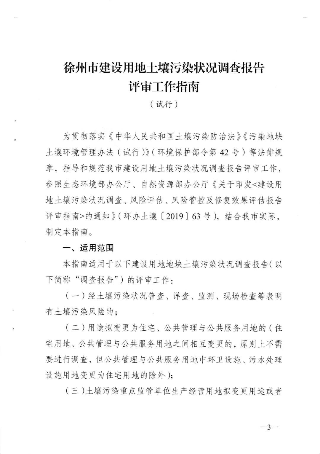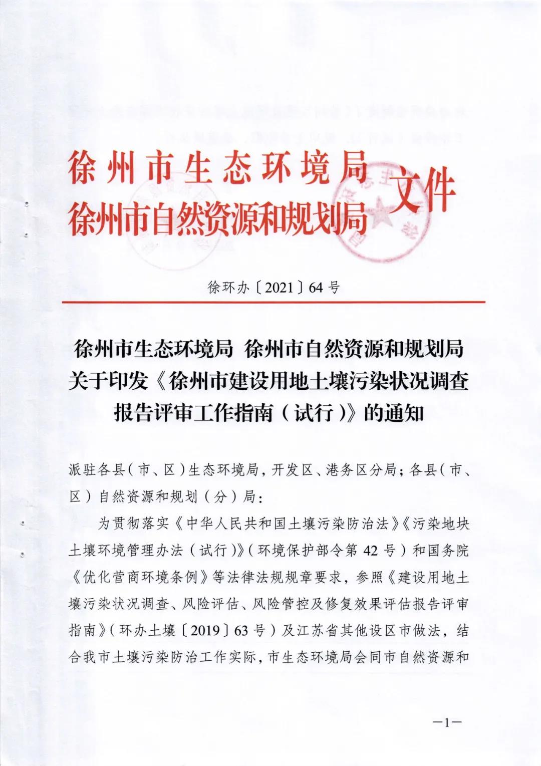 近日,徐州市生態(tài)環(huán)境局、徐州市自然資源和規(guī)劃局印發(fā)《徐州市建設(shè)用地土壤污染狀況調(diào)查報(bào)告評(píng)審工作指南(試行)》。全文如下: