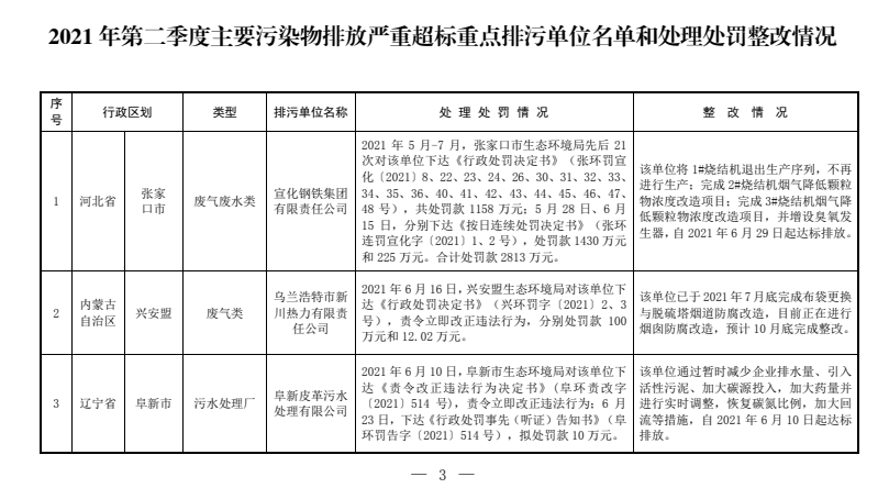 附件:2021年第二季度主要污染物排放嚴(yán)重超標(biāo)重點(diǎn)排污單位名單和處理處罰整改情況