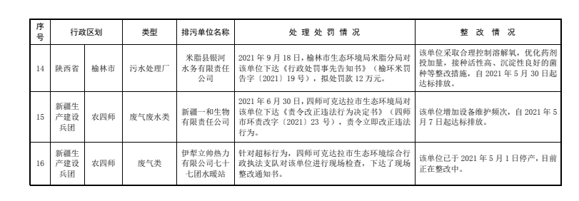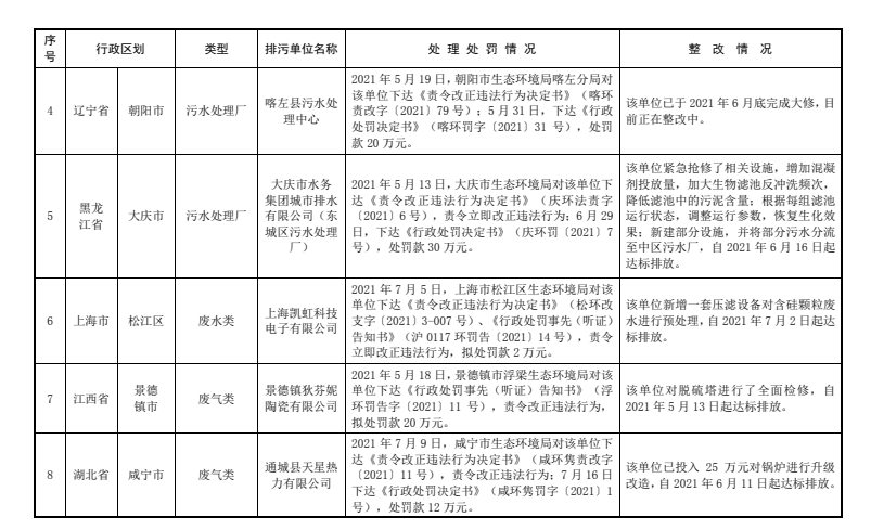 關(guān)于2021年第二季度主要污染物排放嚴(yán)重超標(biāo)重點(diǎn)排污單位名單和處理處罰整改情況的函