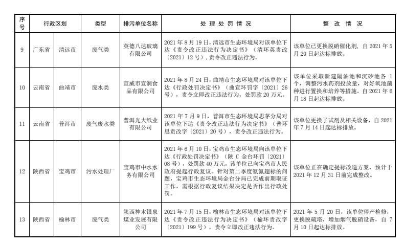 《關(guān)于2021年第二季度主要污染物排放嚴(yán)重超標(biāo)重點(diǎn)排污單位名單和處理處罰整改情況的函》
