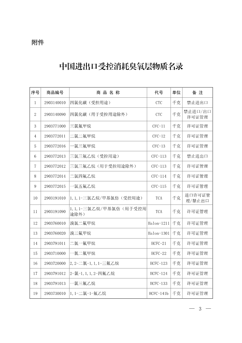 《關(guān)于發(fā)布中國(guó)進(jìn)出口受控消耗臭氧層物質(zhì)名錄的公告》