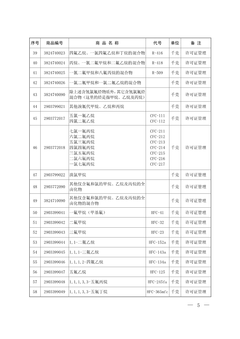 海關(guān)總署《關(guān)于發(fā)布中國(guó)進(jìn)出口受控消耗臭氧層物質(zhì)名錄的公告》