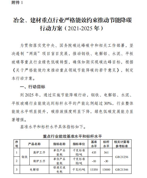 附件:1.冶金、建材重點(diǎn)行業(yè)嚴(yán)格能效約束推動(dòng)節(jié)能降碳行動(dòng)方案(2021-2025年)