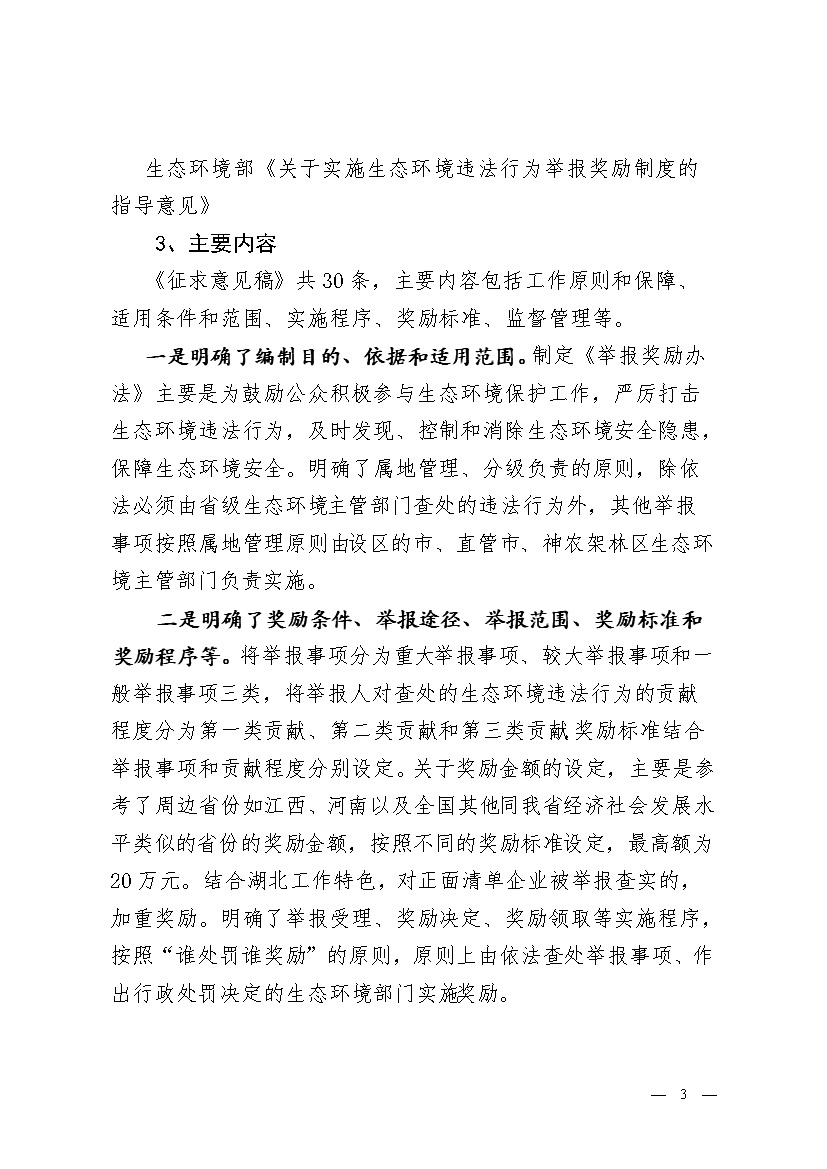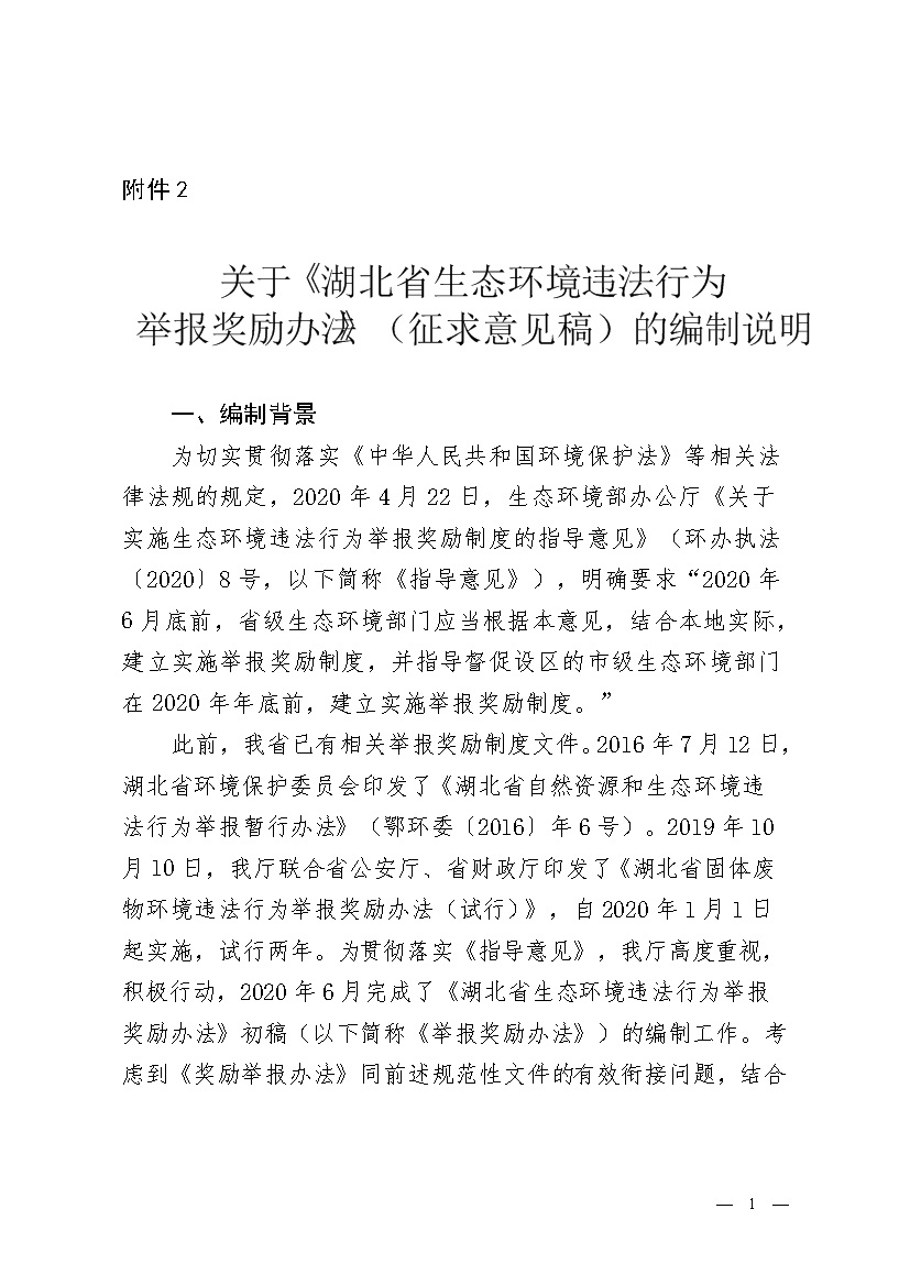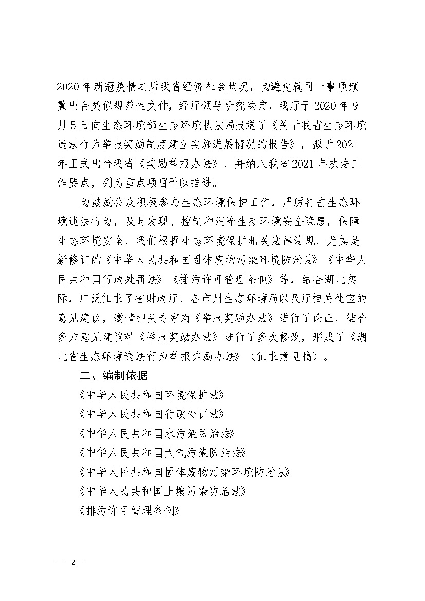 2. 《湖北省生態(tài)環(huán)境違法行為舉報(bào)獎(jiǎng)勵(lì)辦法》(征求意見(jiàn)稿)的編制說(shuō)明