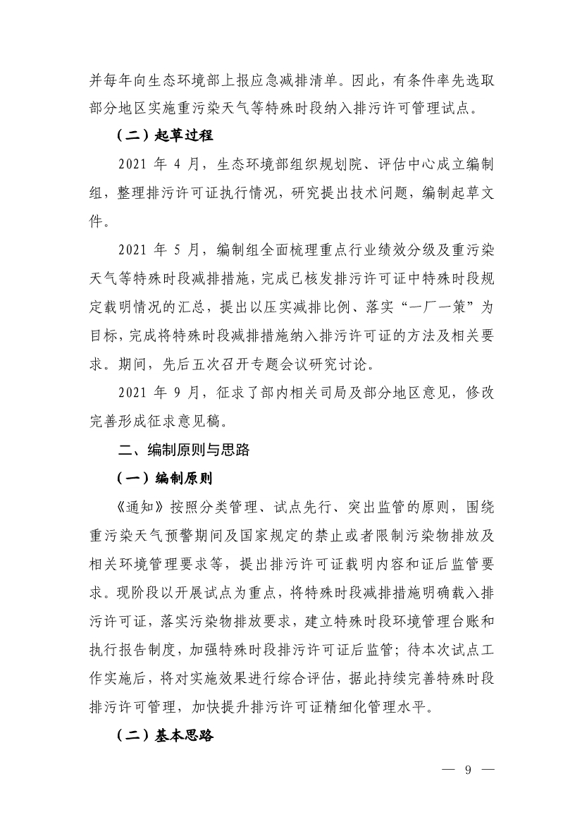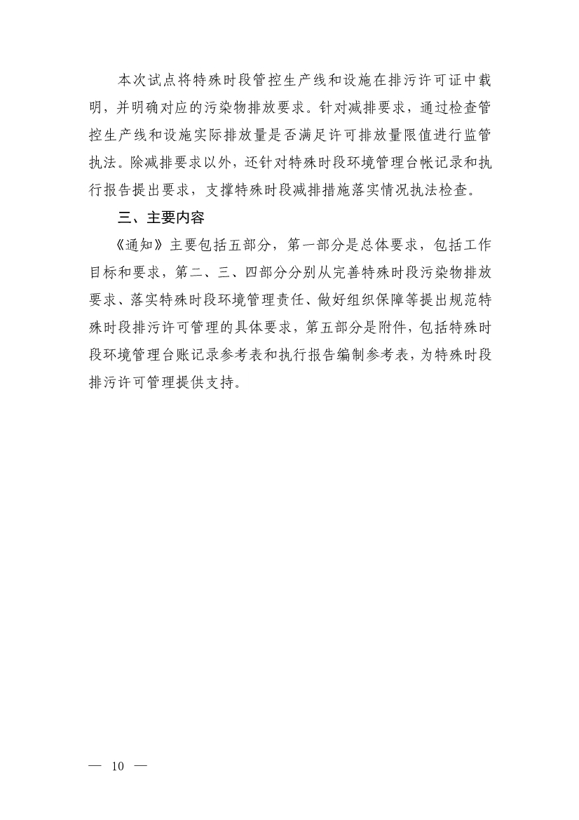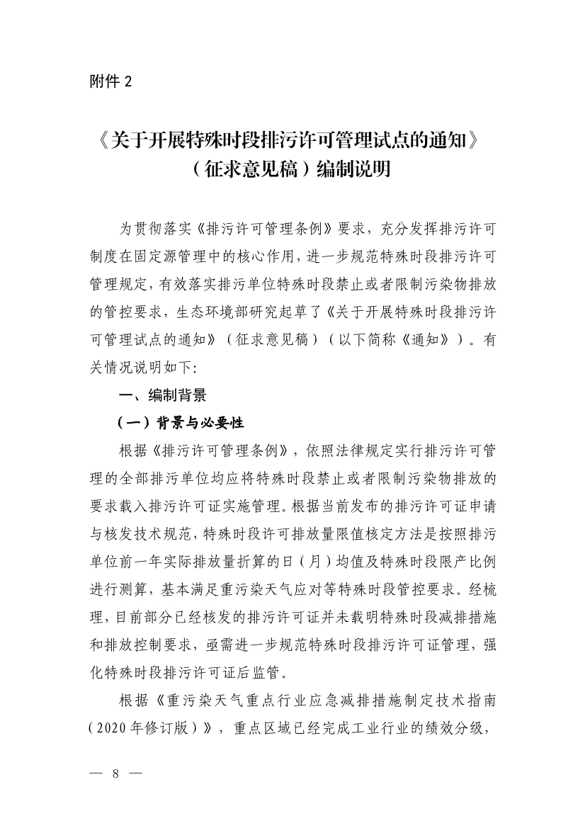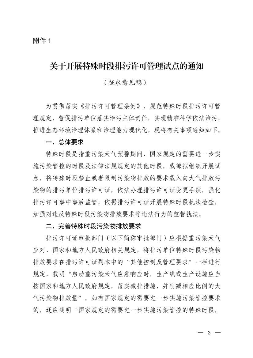 《關于開展特殊時段排污許可管理試點的通知》(征求意見稿)