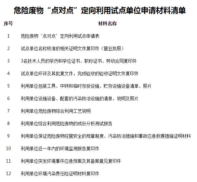 附件:1.危險廢物“點對點”定向利用試點申請材料清單