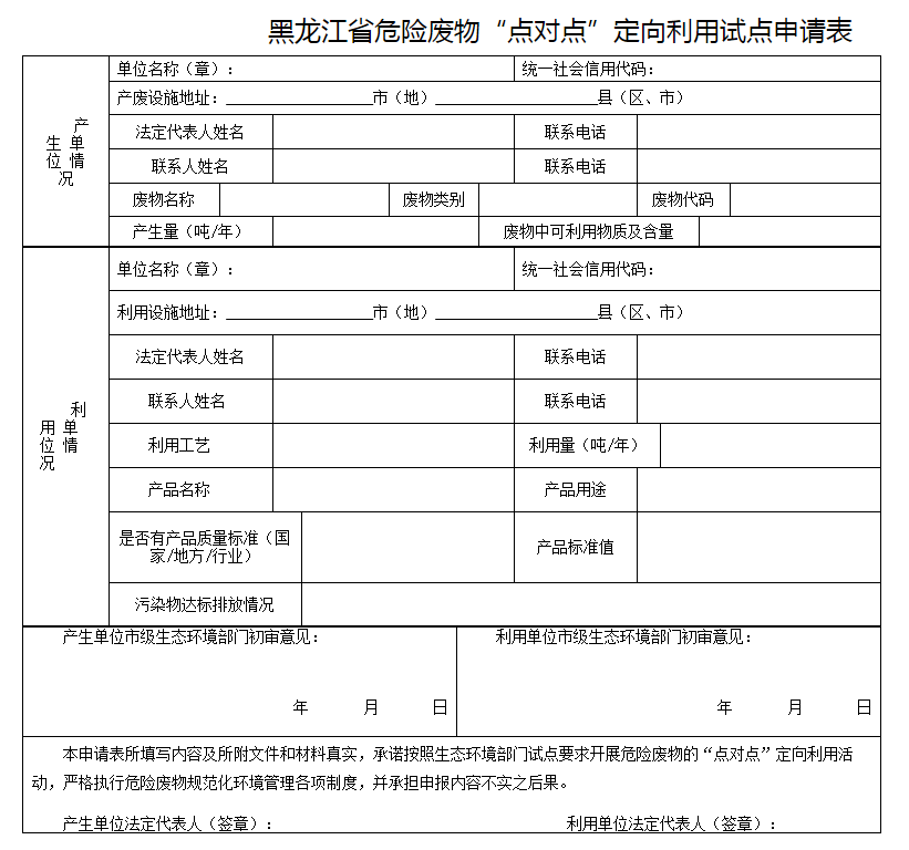 《黑龍江省危險廢物“點對點”定向利用豁免管理試點實施方案》