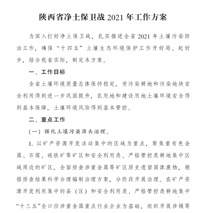 《陜西省凈土保衛(wèi)戰(zhàn)2021年工作方案》