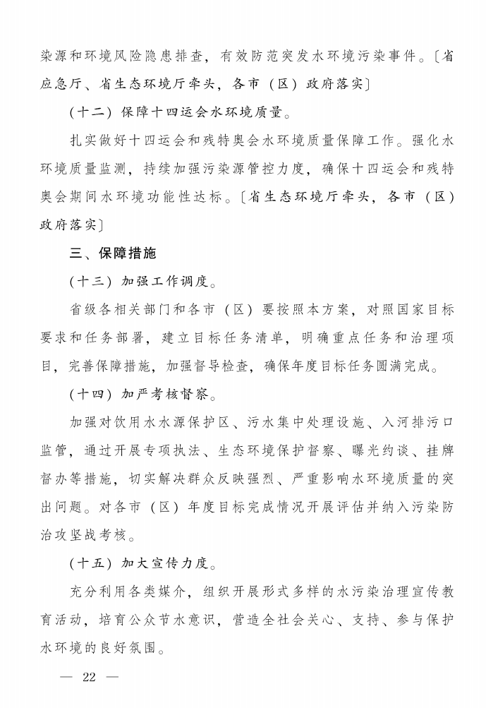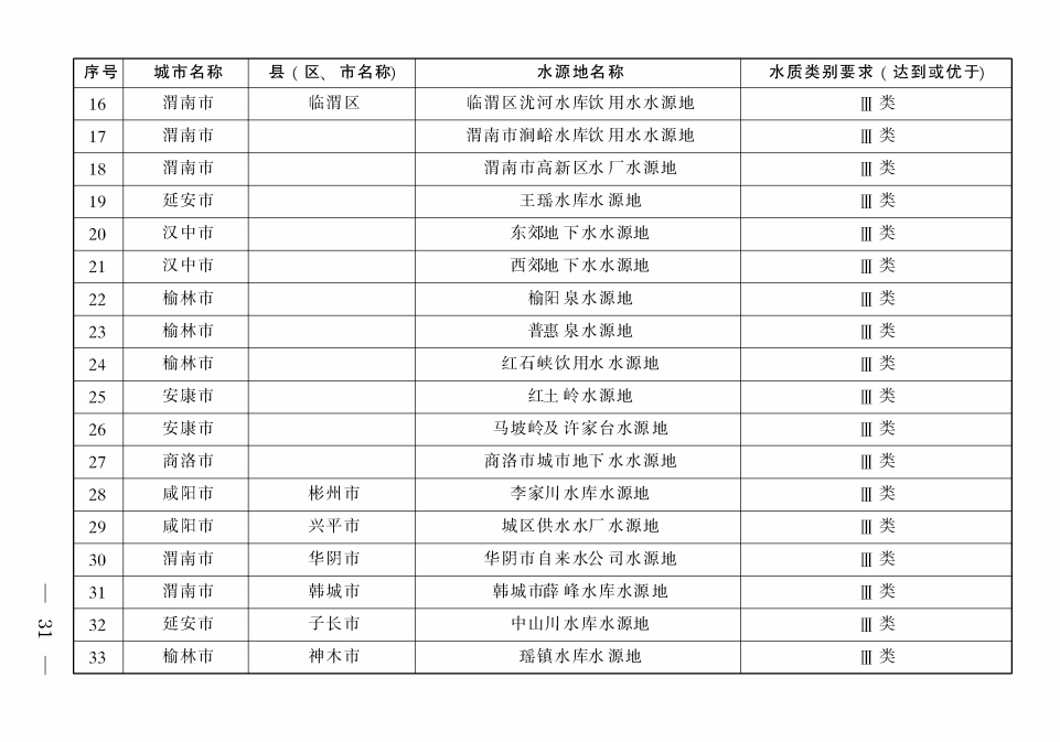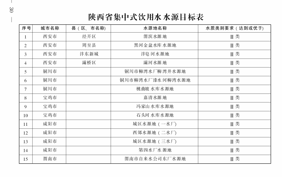 陜西省人民政府辦公廳發(fā)布關(guān)于印發(fā)碧水保衛(wèi)戰(zhàn)2021年工作方案的通知,目標(biāo)提出到2021年底全省水環(huán)境質(zhì)量進一步改善,黃河流域水質(zhì)不斷好轉(zhuǎn),長江流域水質(zhì)保持優(yōu)良,111個地表水國考斷面水質(zhì)優(yōu)良比例、劣V類比例達到國家要求,33個納入國家考核的城市集中式飲用水水源水質(zhì)達標(biāo)率100%。詳情如下:
