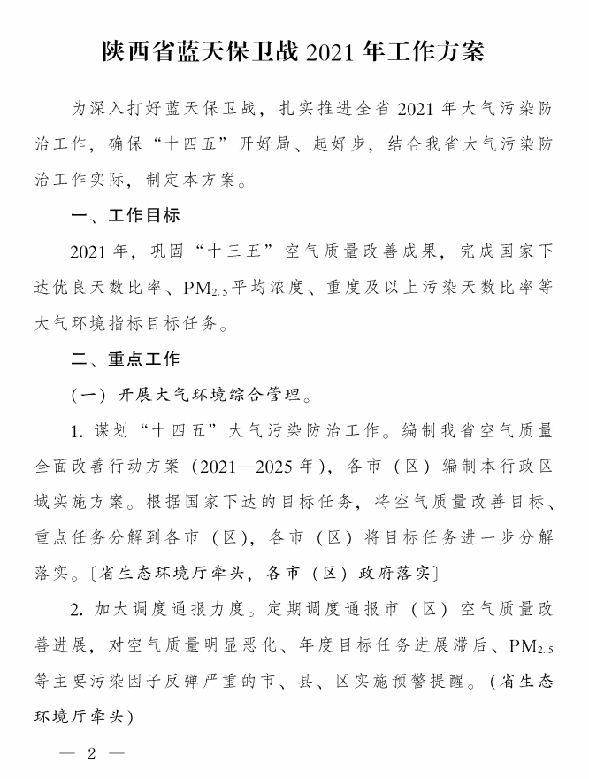 《陜西省藍(lán)天保衛(wèi)戰(zhàn)2021年工作方案》