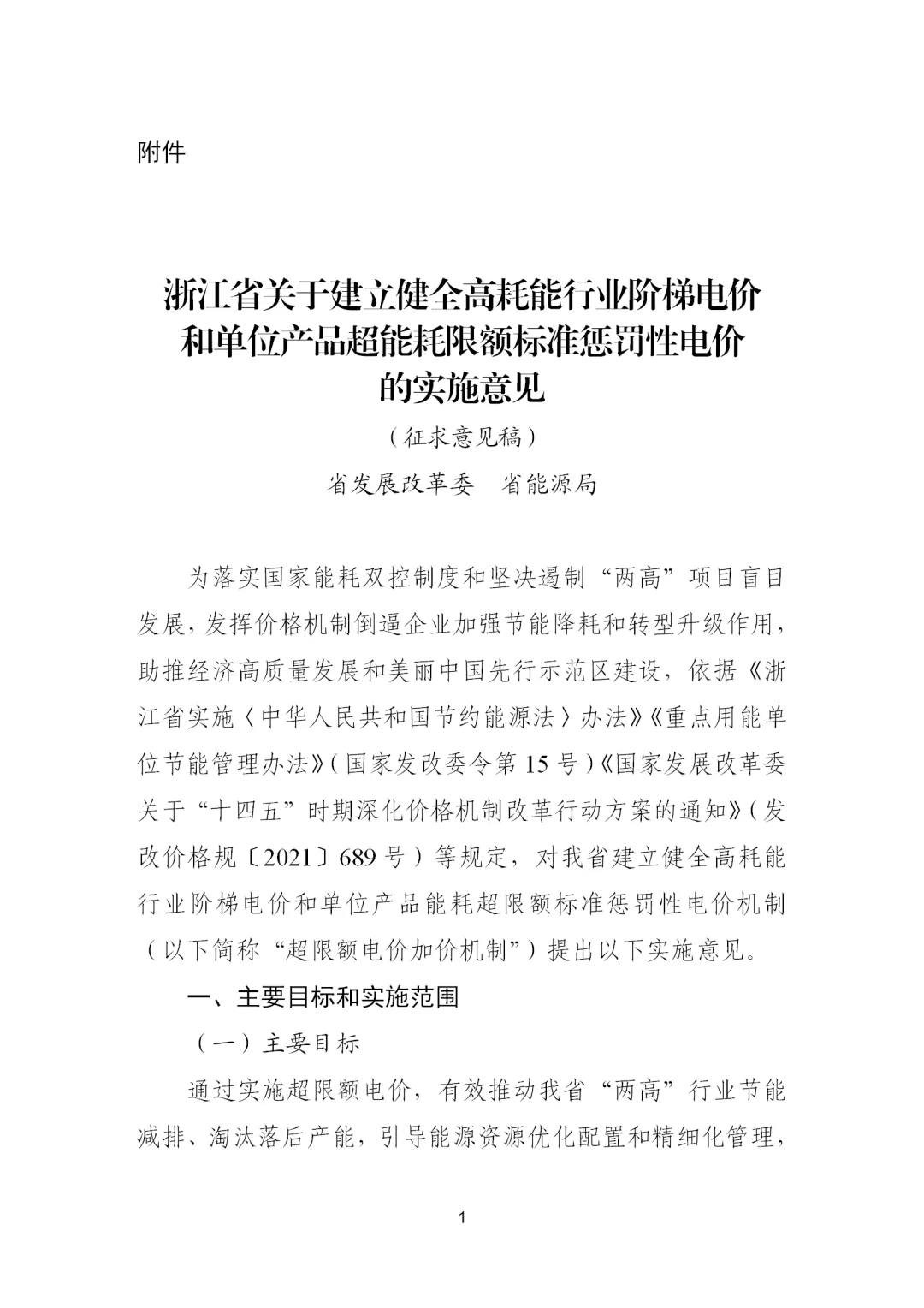 《浙江省關(guān)于建立健全高耗能行業(yè)階梯電價(jià)和單位產(chǎn)品超能耗限額標(biāo)準(zhǔn)懲罰性電價(jià)的實(shí)施意見(jiàn)(征求意見(jiàn)稿)》