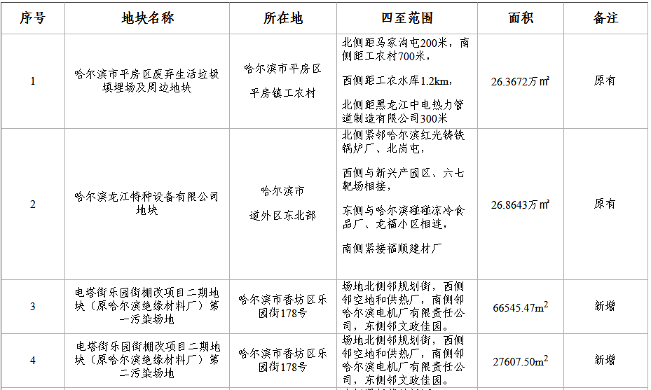 附件:黑龍江省建設用地土壤污染風險管控和修復名錄 (2021年度)