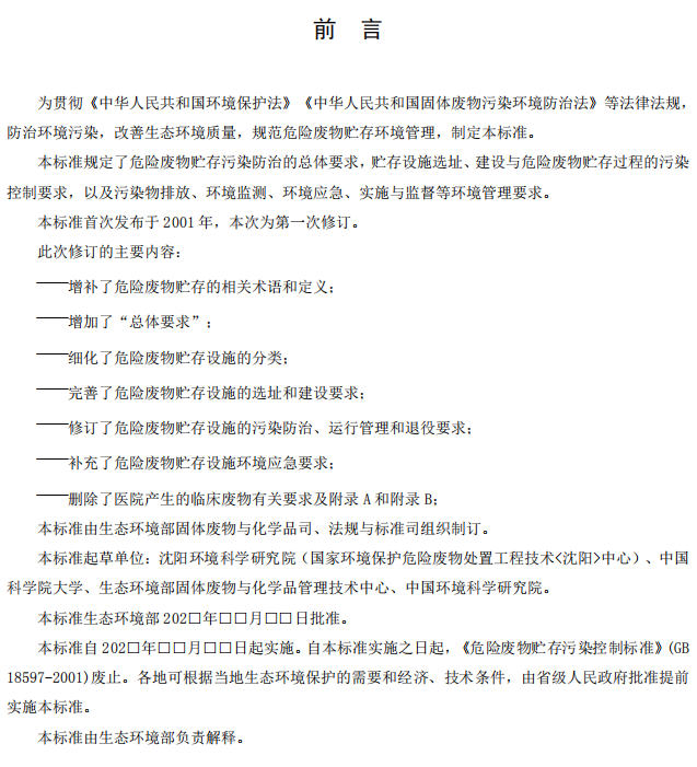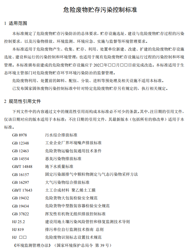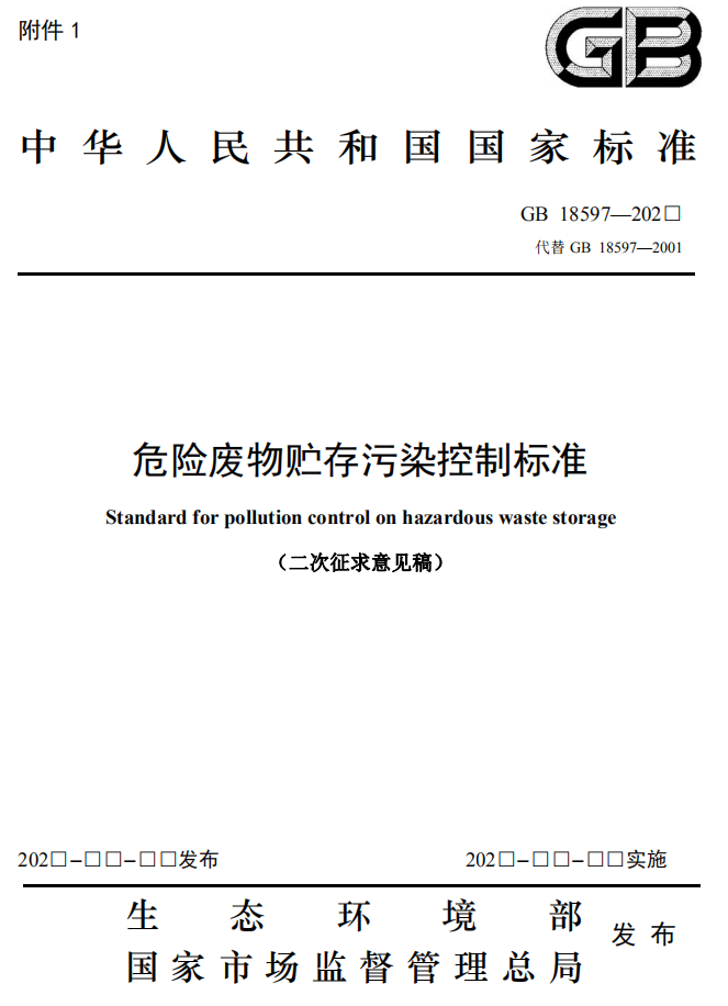 《危險廢物貯存污染控制標(biāo)準(zhǔn)(二次征求意見稿)