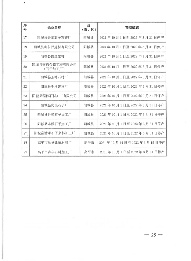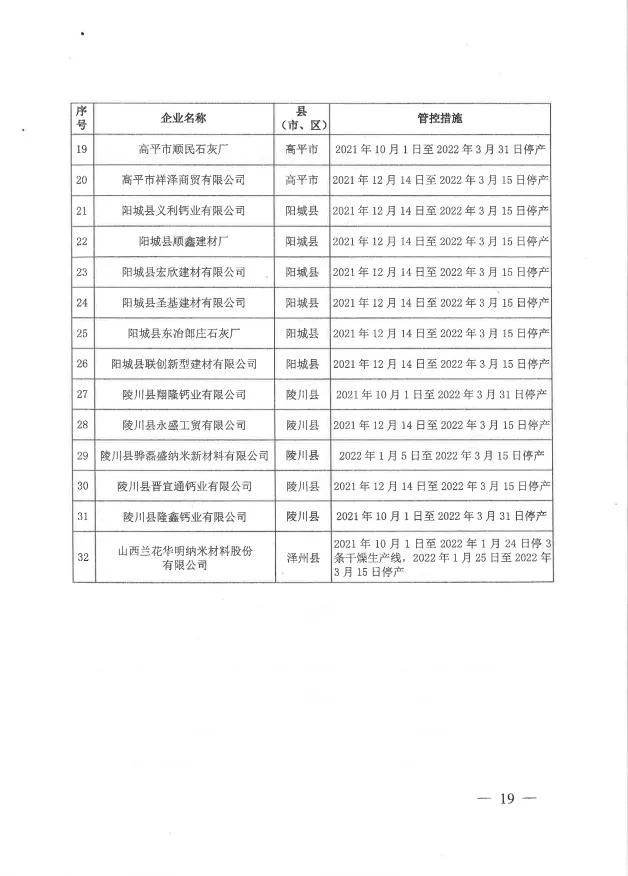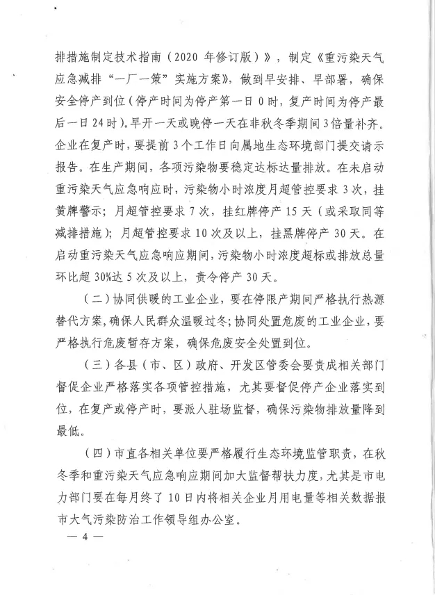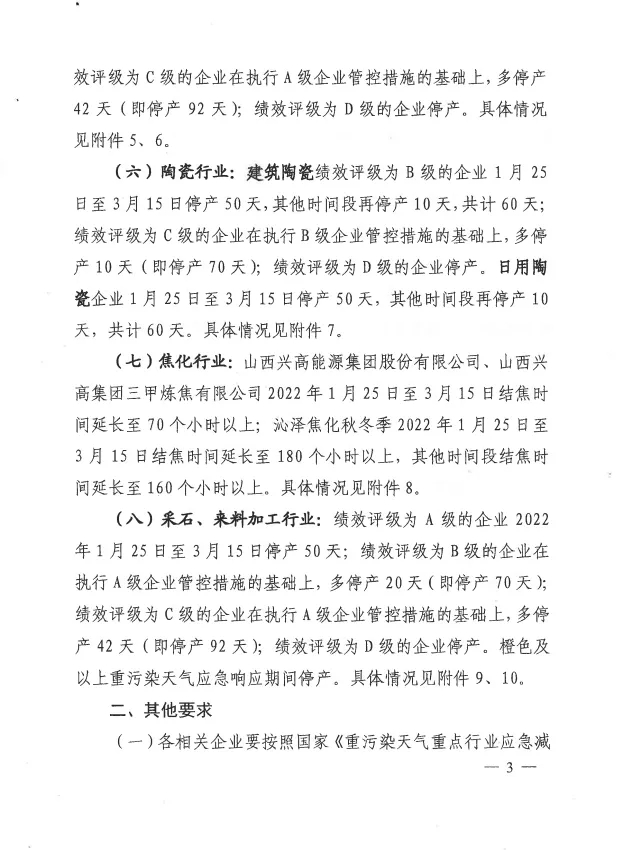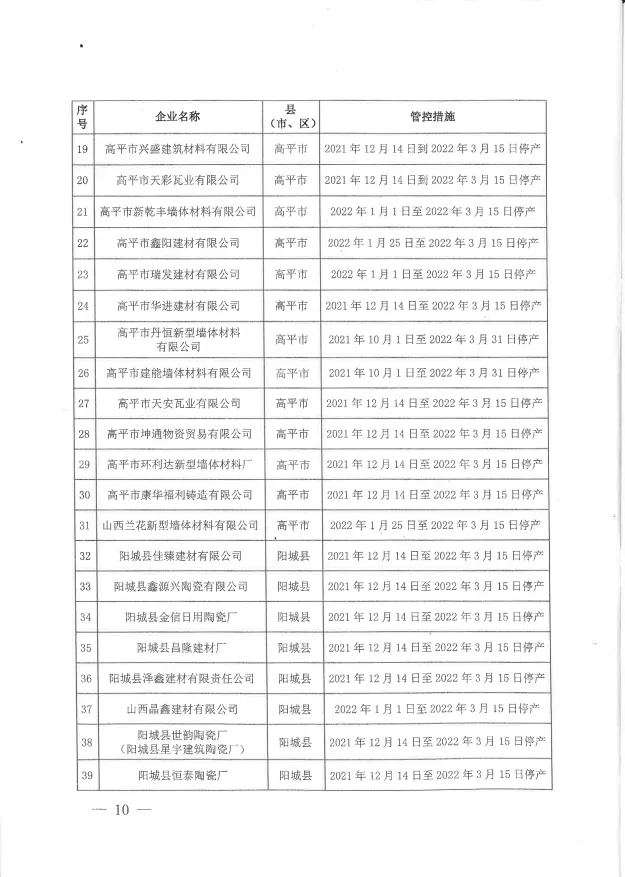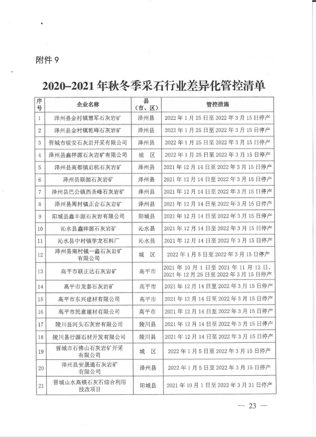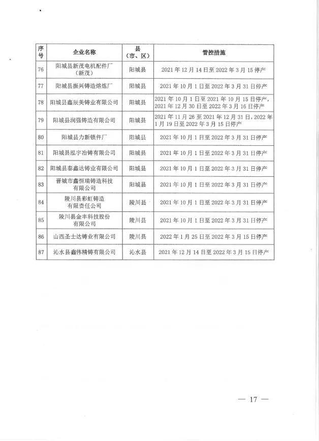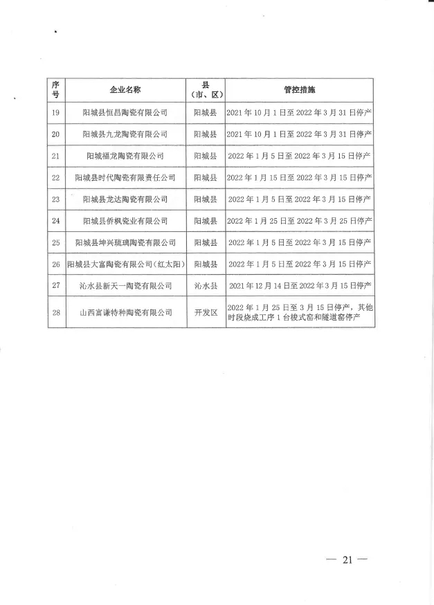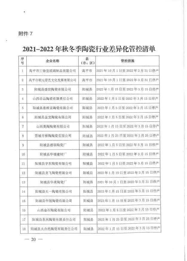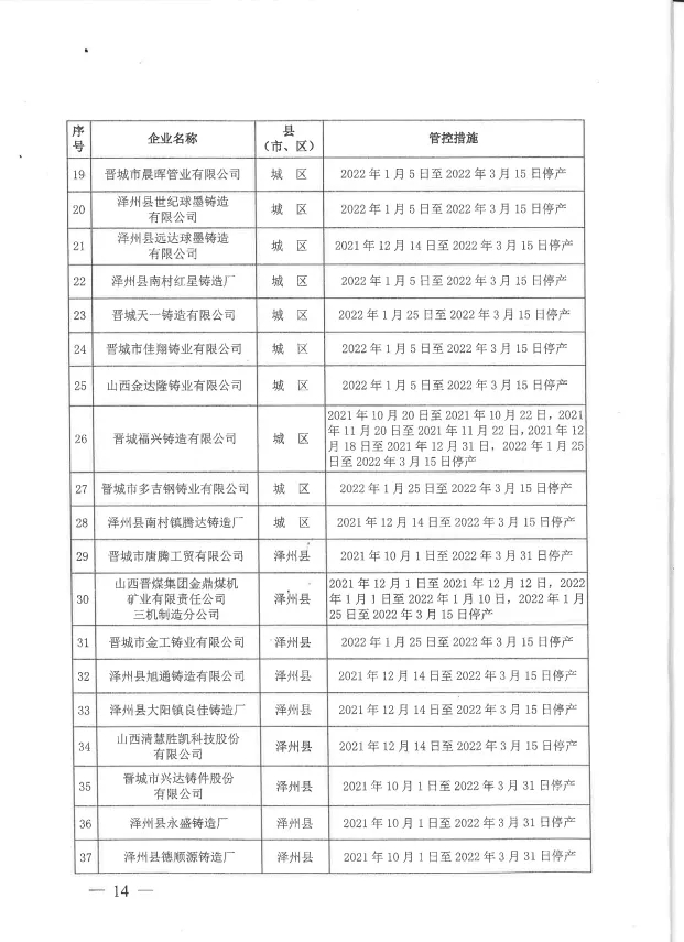 《晉城市關(guān)于明確2021-2022年秋冬季重點行業(yè)企業(yè)差異化應(yīng)急管控措施的通知》(晉市氣防【2021】2號)