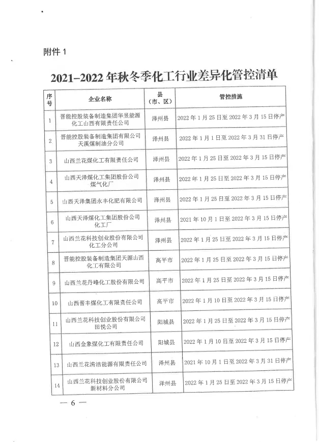 近日,晉城市大氣污染防治工作領(lǐng)導(dǎo)組發(fā)布了關(guān)于明確2021-2022年秋冬季重點行業(yè)企業(yè)差異化應(yīng)急管控措施的通知,涉及煤化工行業(yè)、鋼鐵行業(yè)、水泥、焦化等行業(yè)。詳情如下: