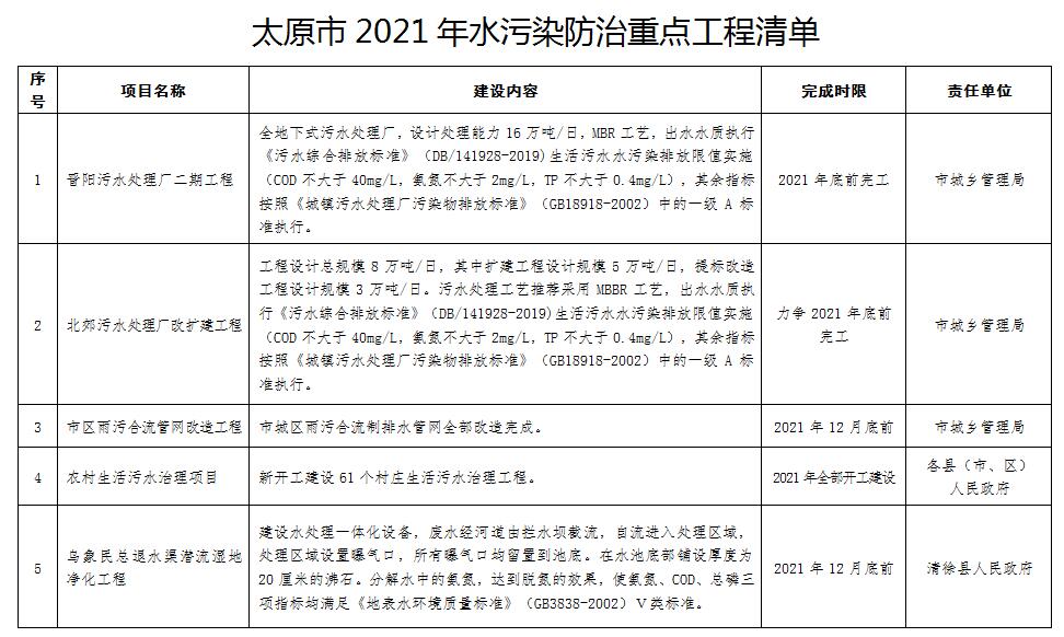 《太原市水環(huán)境質(zhì)量鞏固提升2021年行動計(jì)劃》(附項(xiàng)目清單)