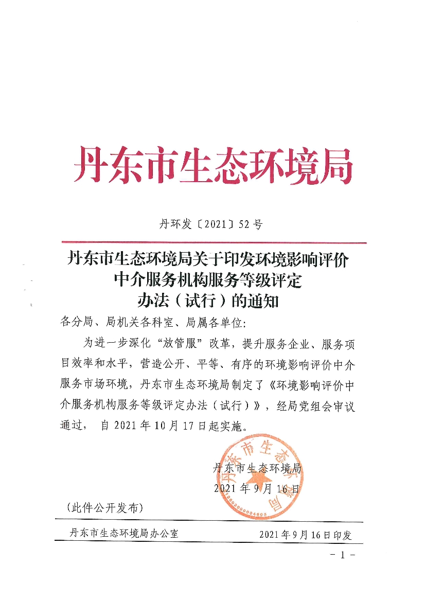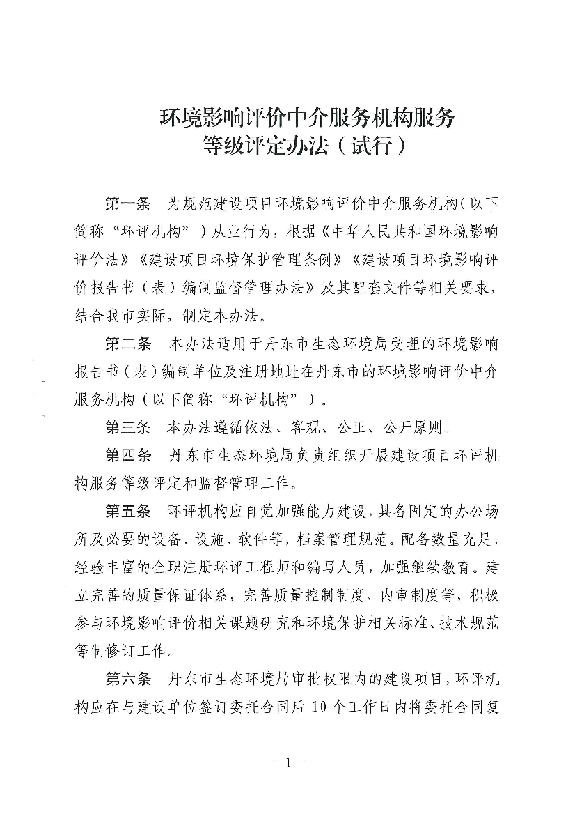 《遼寧丹東關(guān)于環(huán)境影響評價中介服務(wù)機(jī)構(gòu)服務(wù)等級評定辦法(試行)的通知》