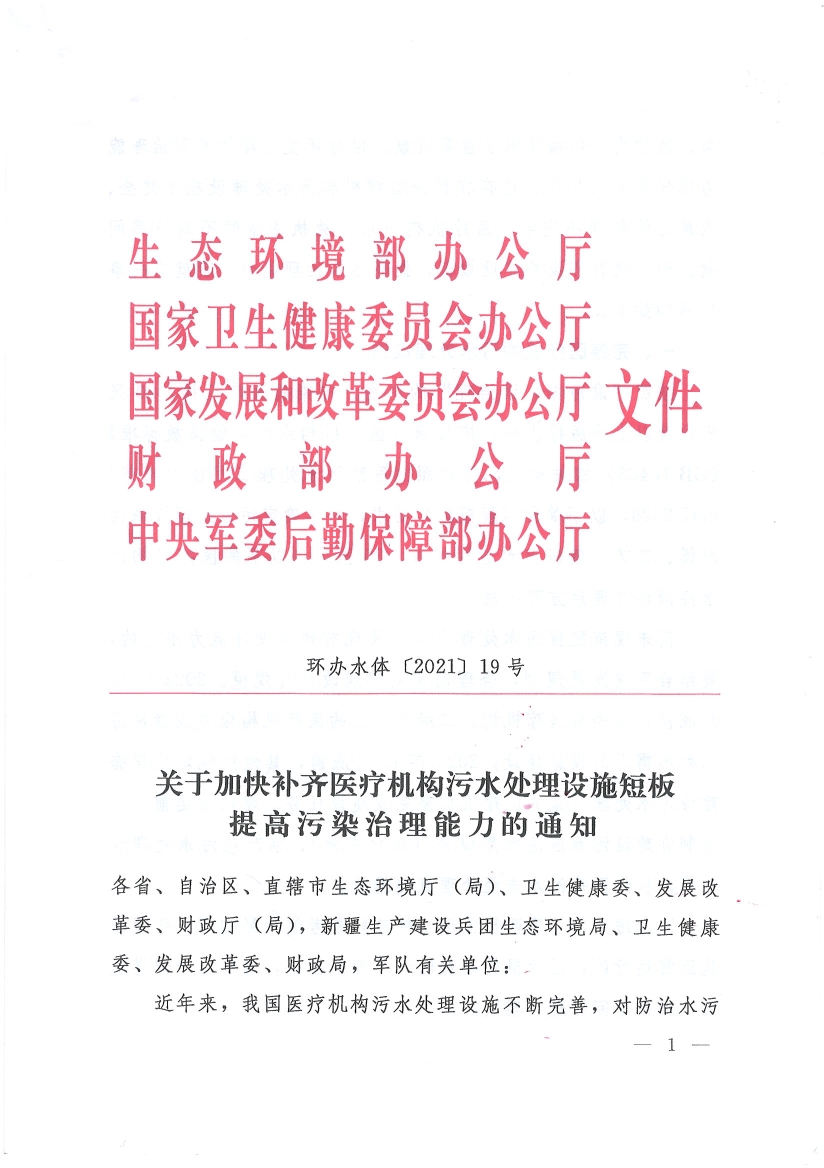 《青海五部門印發(fā)關于加快補齊醫(yī)療機構污水處理設施短板 提高污染治理能力的通知》(環(huán)辦水體【2021】19號)