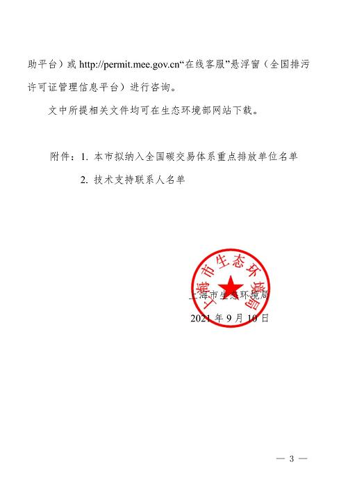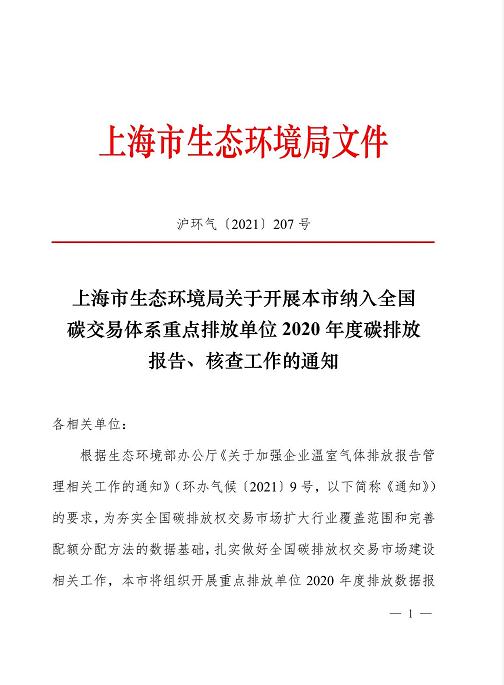 《上海市關(guān)于開展本市納入全國碳交易體系重點(diǎn)排放單位2020年度碳排放報(bào)告、核查工作的通知》(滬環(huán)氣【2021】207號)