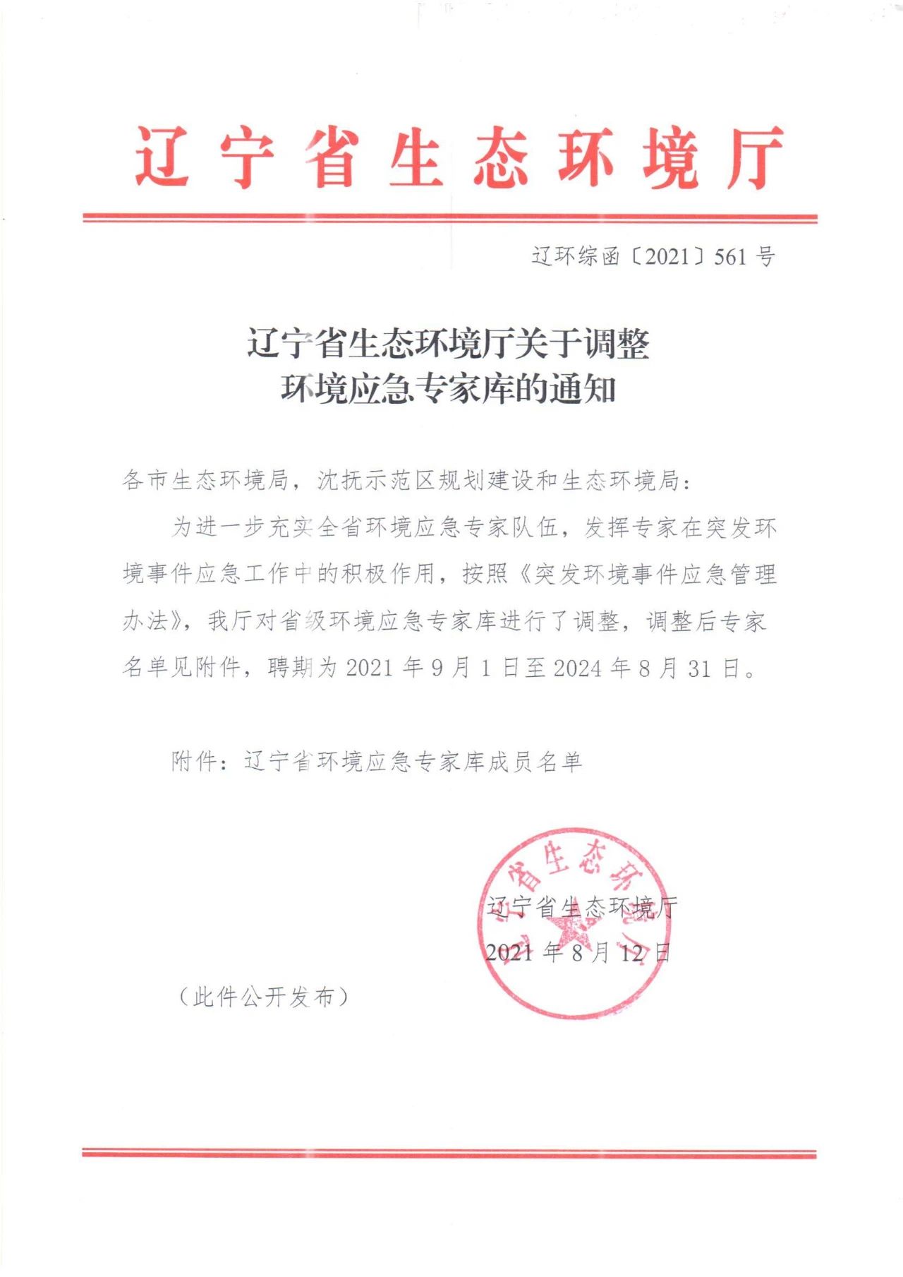 《遼寧省生態(tài)環(huán)境廳更新省級環(huán)境應(yīng)急專家?guī)臁罚ㄟ|環(huán)綜函【2021】561號)