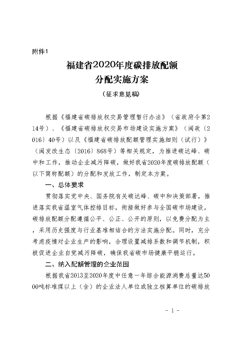 附件:1.《福建省2020年度碳排放配額分配實(shí)施方案(征求意見稿)》