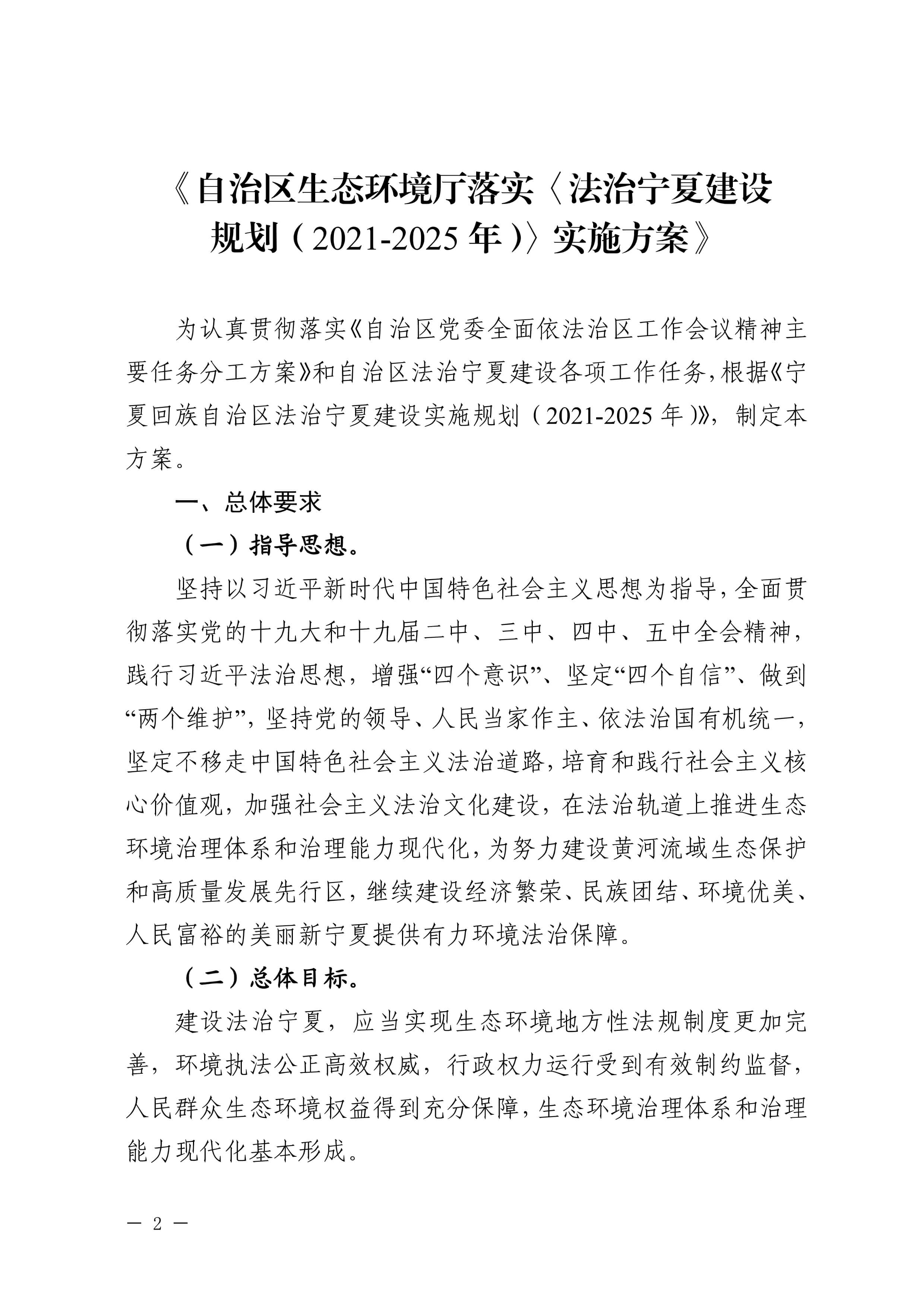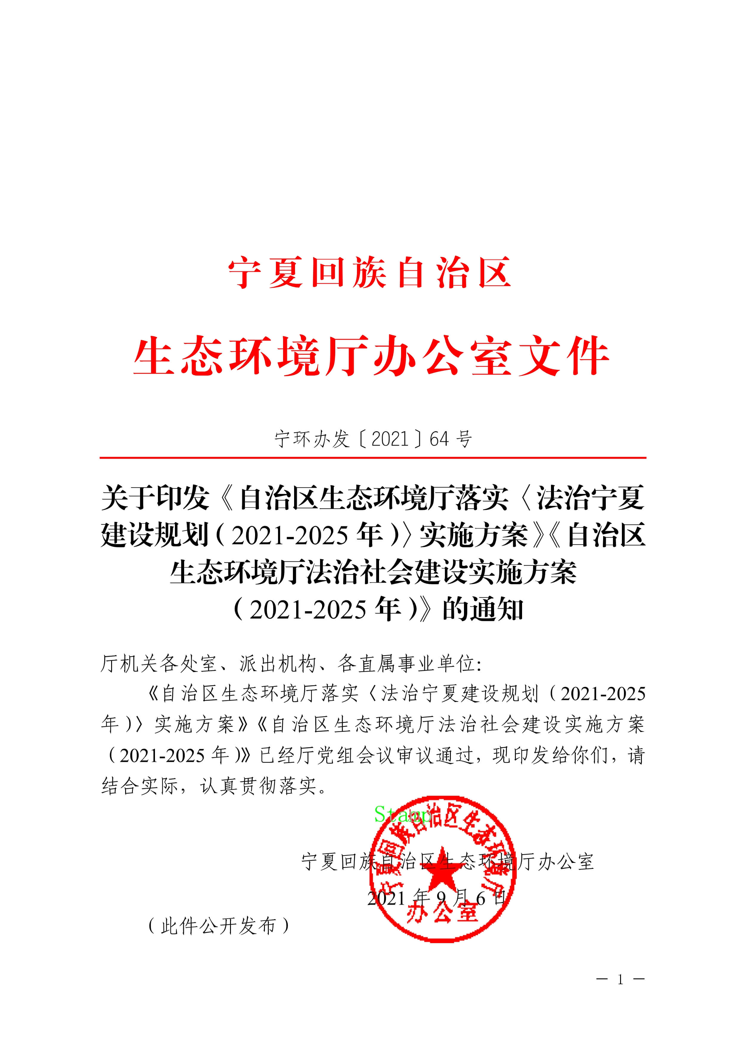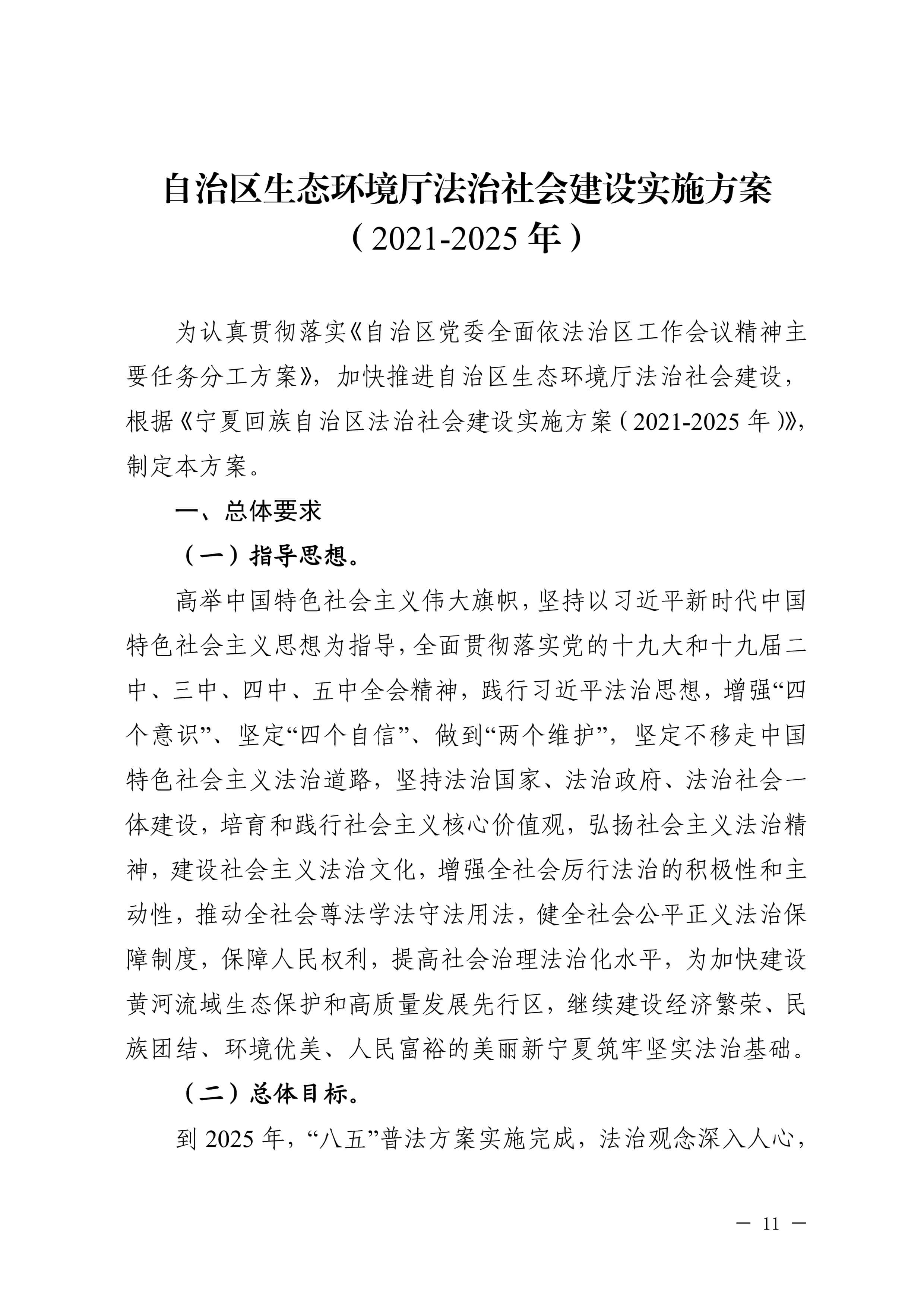 《寧夏自治區(qū)生態(tài)環(huán)境廳法治社會建設實施方案(2021-2025年)》