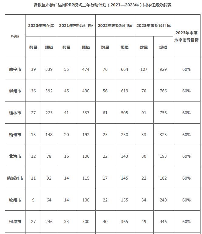 《廣西推廣運(yùn)用PPP模式三年行動(dòng)計(jì)劃(2021—2023年)》